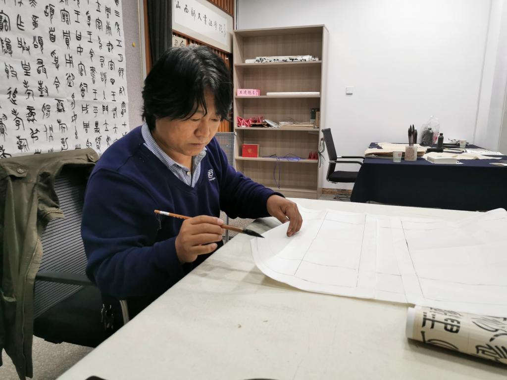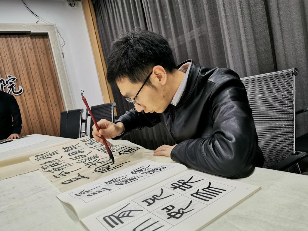 10月28日晚,公司两周一次的专业教师“重温经典”书法艺术交流活动在10505技法教研室如期举行。活动过程中,技法教研室主任王建魁对各位老师的作品进行了细致点评,并对这几次教研活动做了总结。各位老师对这一阶段大篆的学习也分享了各自的感受。