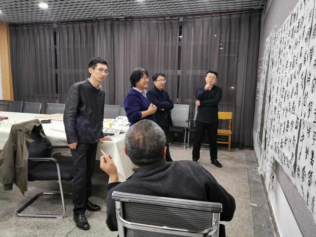 随后,王建魁老师对当前及今后一段时间的小篆的学习做了安排,要求各位老师主要从秦、清小篆进行取法。大家围绕这两个时期的小篆进行了临习与交流