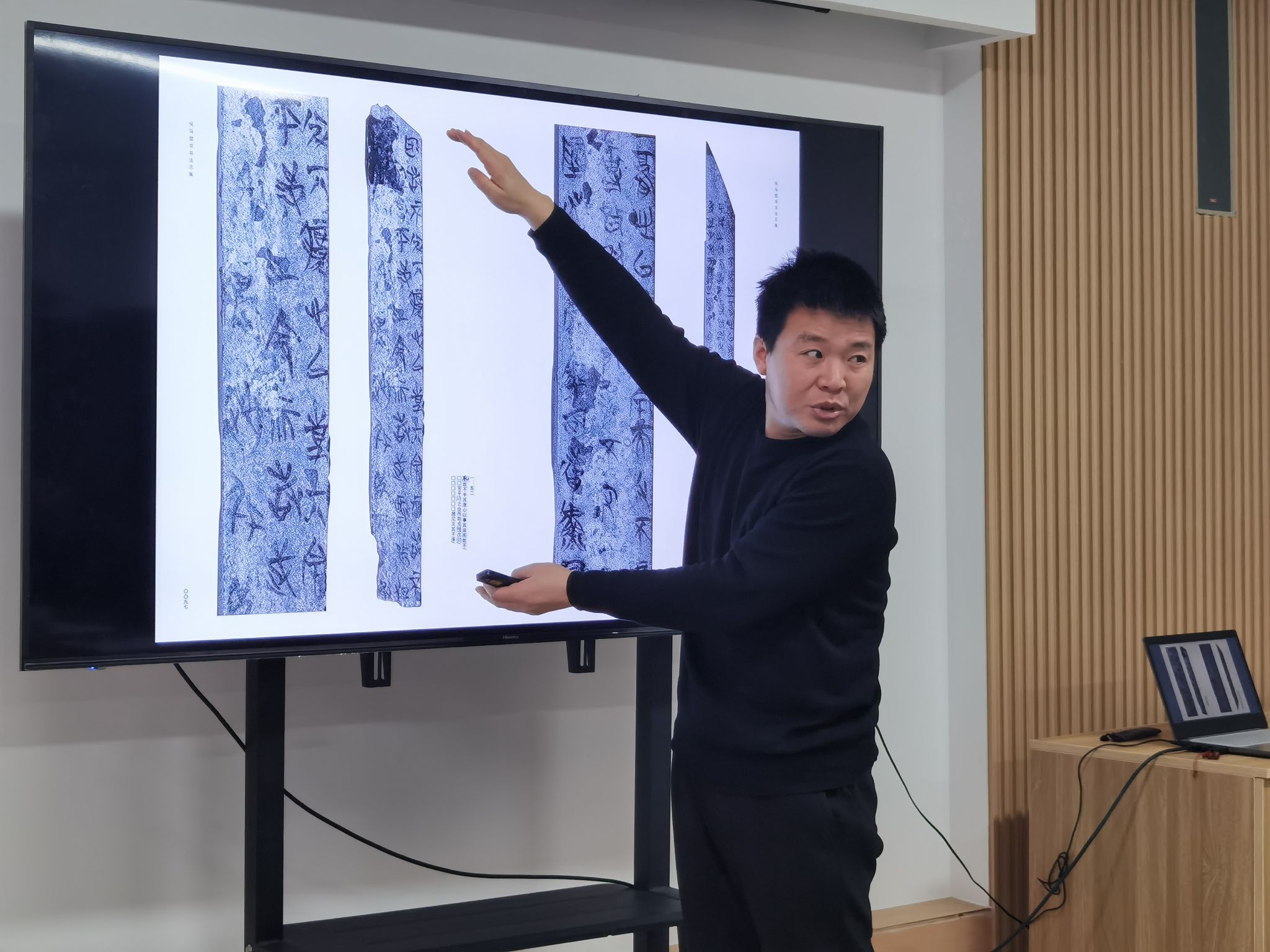 上海书画出版社编审、《书法》杂志副主编杨勇汇报了近期《侯马盟书书法总集》的图片处理以及排版情况,并就其中存在的一些细节问题与图版的拍摄、电分以及排版充分向与会专家进行介绍。