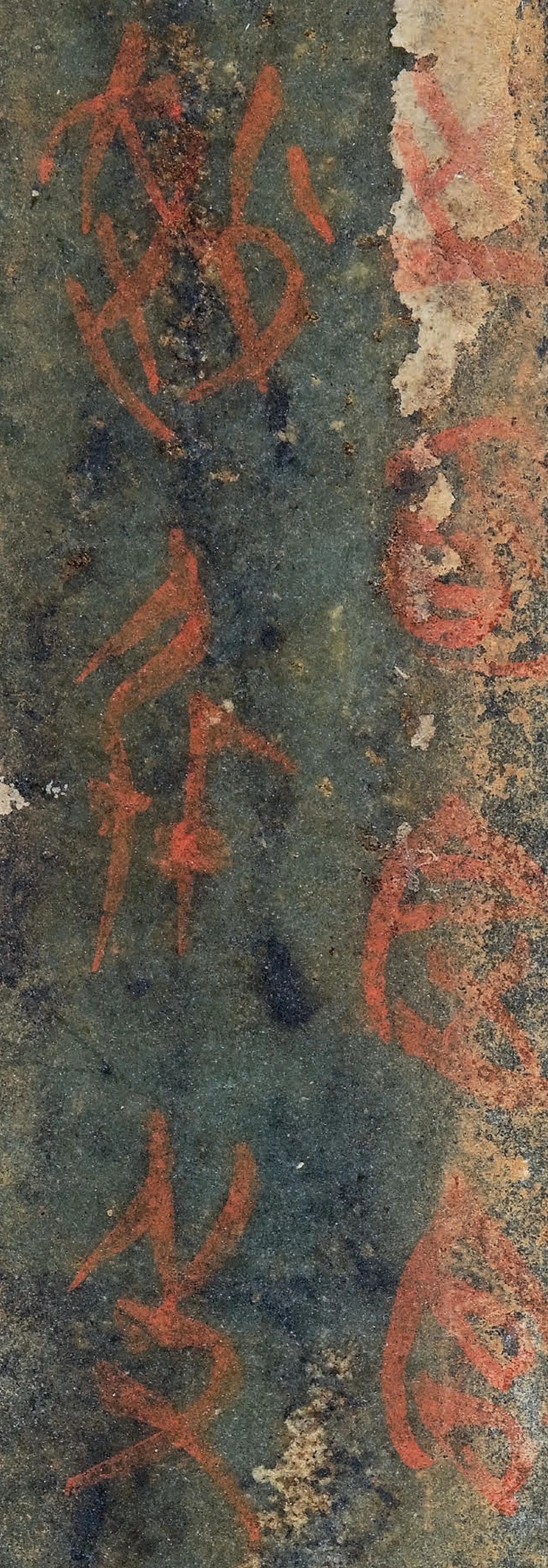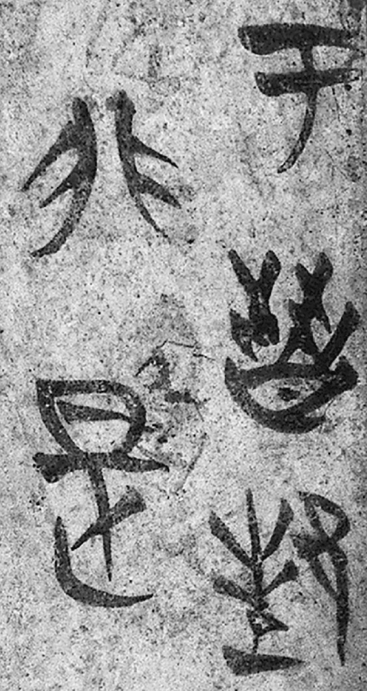 古文蝌蚪的典型笔法头粗尾细,形似蝌蚪。其样式看似单一,却能随体赋形,变化层出不穷。结字纵横比例呈现“横曲”“方正”“修长”等不同面貌,似有西周金文正体的遗存。且在不同书法载体上,其章法形式有的疏可走马,有的密不通风,又有牵丝映带、顾盼生姿,凡此种种都可为当今的书法创作所借鉴。