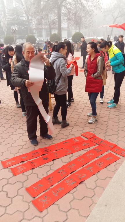 又是一年春来到,为喜迎新春,365英国上市公司于2015年12月28、29日在师老员工活动中心旁和科学会堂前开展了“迎新年、送春联”活动,为师大全体师生和学府社区的居民们送去了节日的祝福。公司党委副书记张忠民、办公室主任王其远、专职教师曹亚彬和王建魁来到活动现场为大家加油鼓劲,并进行现场指导。