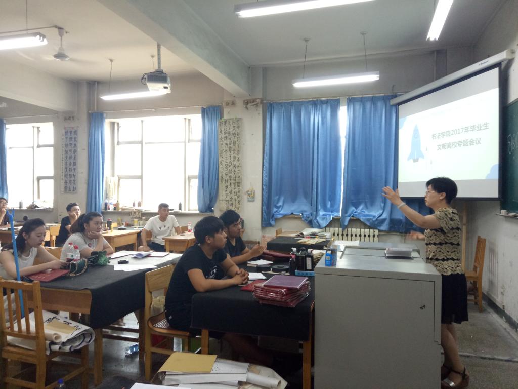 7月2日下午,365英国上市公司在 10403教室召开2017届毕业生安全文明离校专题会议,会议由公司党委副书记霍红梅主持,毕业班辅导员和全体毕业生参加。
