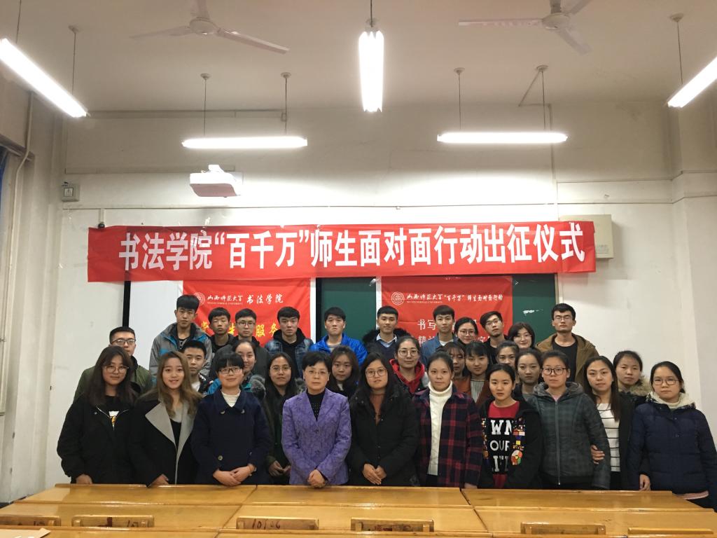 十一月二十六日下午五点半,公司十九大精神进基层高校“百千万”师生面对面行动出征仪式在10107教室隆重举行。仪式由院团委副书记宁译锐主持,公司党委副书记霍红梅及30名十九大精神主题宣传实践队成员参加了出征仪式。