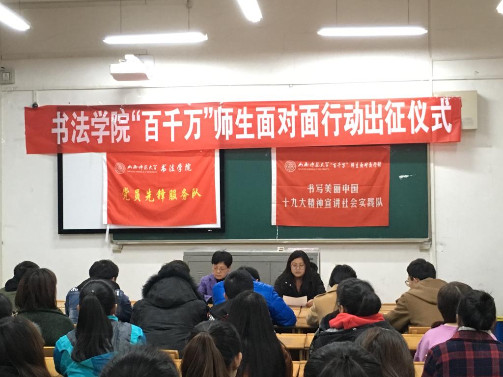 山西省十九大精神进基层“百千万”师生面对面行动是按照省委的要求部署,组织百名理论骨干深入各市宣讲解读十九大精神,组织千名教师结合思政课教学改革深入基层宣传十九大精神,组织万名员工深入机关、企业、社区、农村一线开展实践体验活动。在此项活动中,公司派出了一支由11名宣讲专家、21名宣讲教师,31支主题实践分队组成的宣传团队,深入临汾各地市进行宣讲和实践,多角度、全方位宣传解读党的十九大精神,促进高校思想政治理论课改革创新,切实把十九大精神讲清楚、讲明白、讲透彻,推动学习贯彻做实十九大精神往实里走、往深里走。