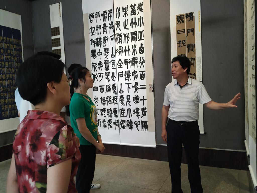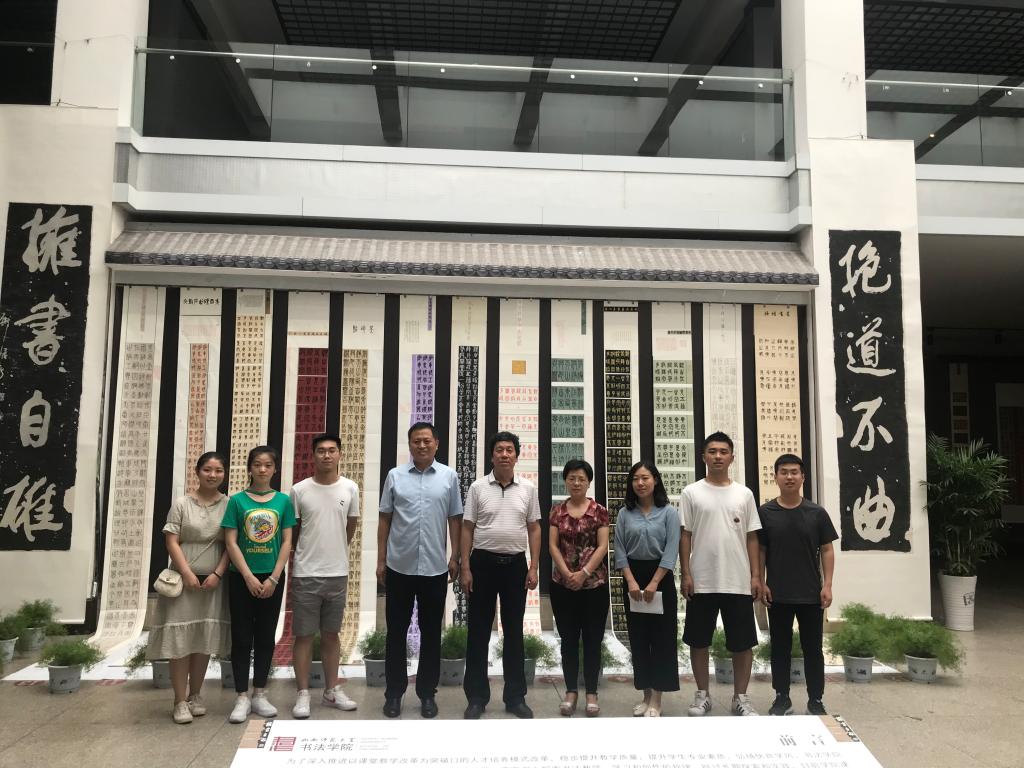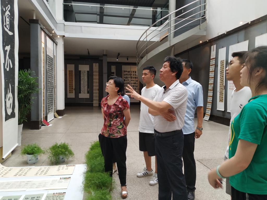 高峰首先听取了公司近期工作情况汇报,并与师生们进行了深入的谈话交流,倾听了员工们的诉求。接着,高峰认真观看了每一幅作品,详细询问了员工作品的创作过程,并对公司课堂教学改革取得的成果给予了充分肯定。最后他鼓励中青年教师要切实担负起立德树人根本任务,继续以多种形式开展课堂教学改革,不断深入探索书法教学、学习和创作的规律,在教学、科研和艺术创作方面力求精益求精,为公司优势专业建设和改革发展贡献自己的力量。