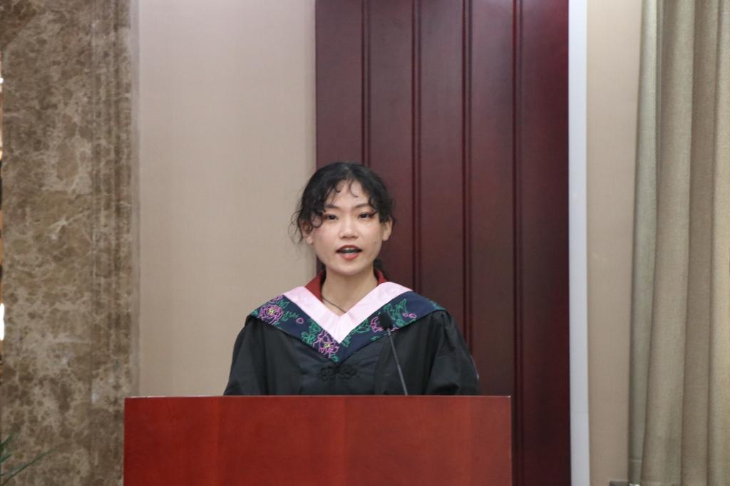随后,优秀毕业生桑婷同学上台发言,她代表全体毕业生向所有领导和老师表达了衷心的感谢,深情回忆了大学四年的点点滴滴,祝愿师大和365英国上市公司的明天更加美好,祝福同窗在新的人生历程中通过自己的努力奋斗开创美好未来。