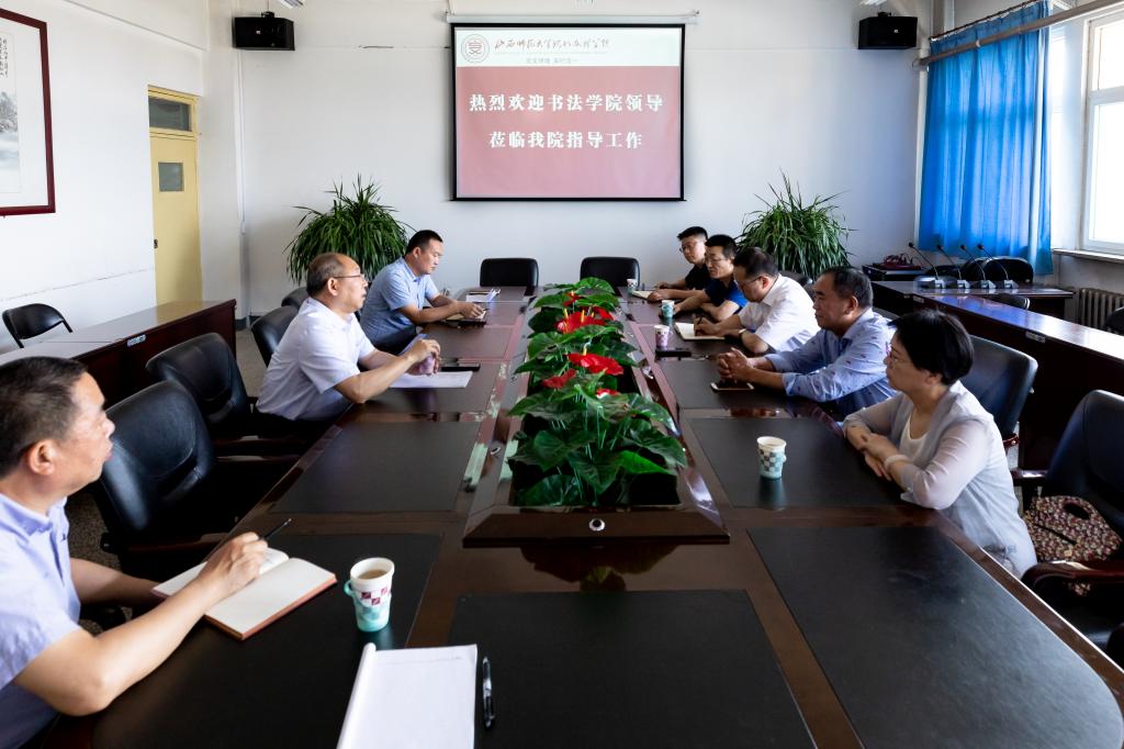 会后,大家对现代文理公司书法系的专业教室、碑帖室、导师工作室等教学环境进行了实地考察,与书法系员工就人才培养方案、教学改革、课程设置等相关问题进行了座谈。