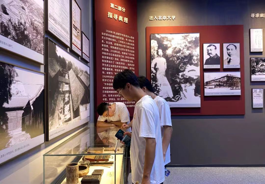 图为实践队成员认真参观学习馆内陈列的物品,仿佛接受了人生的洗礼。让我们深地感受到了现和平时代的来之不易。中国青年网通讯员 吴雨聪 摄