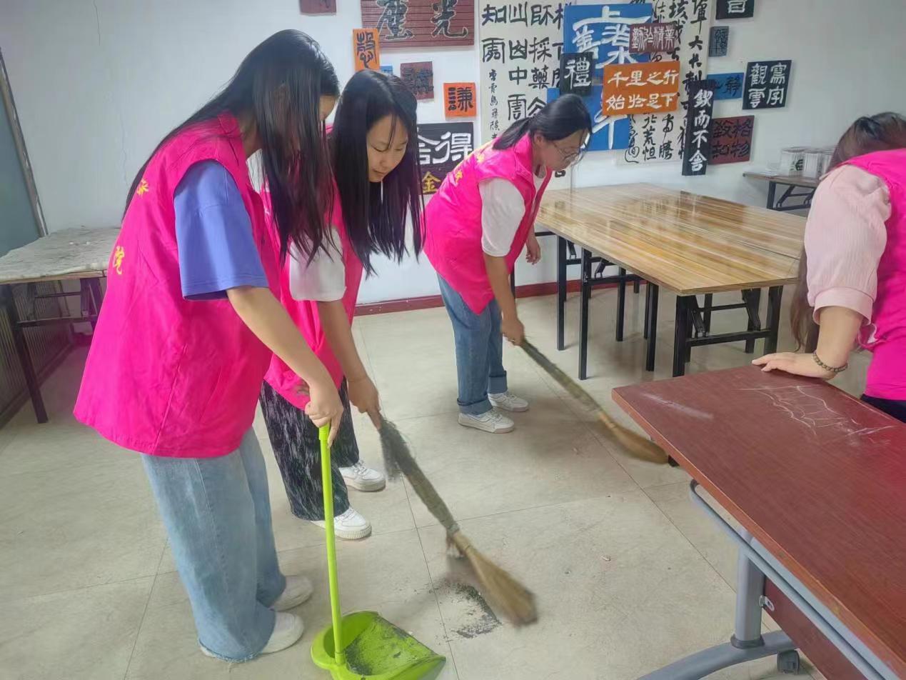 图为志愿者爱心助学结束后打扫教室。志愿者武晓雅摄。