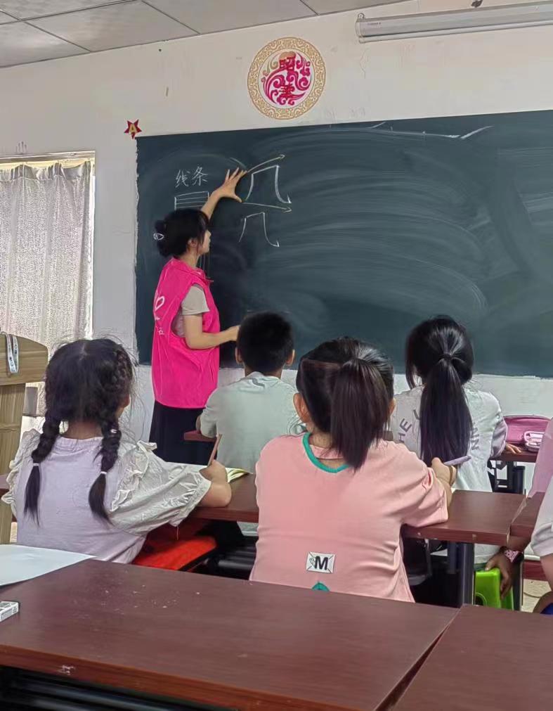 在活动开展过程当中,志愿者与孩子们亲切交谈,认真了解他们的生活与学习的具体情况。结合孩子们的学习实际,志愿者们通过讲述书法故事、开展书画小游戏、一对一教学等多种多样的方式寓教于乐,激发孩子们的学习兴趣和求知欲望,引导孩子们学习和掌握书写技巧,领会书法的魅力。