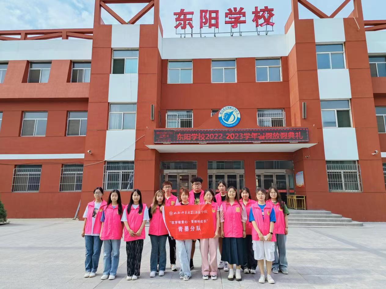 图为爱心助学活动结束后志愿者们在东阳小学楼前合照。志愿者李雅馨摄。