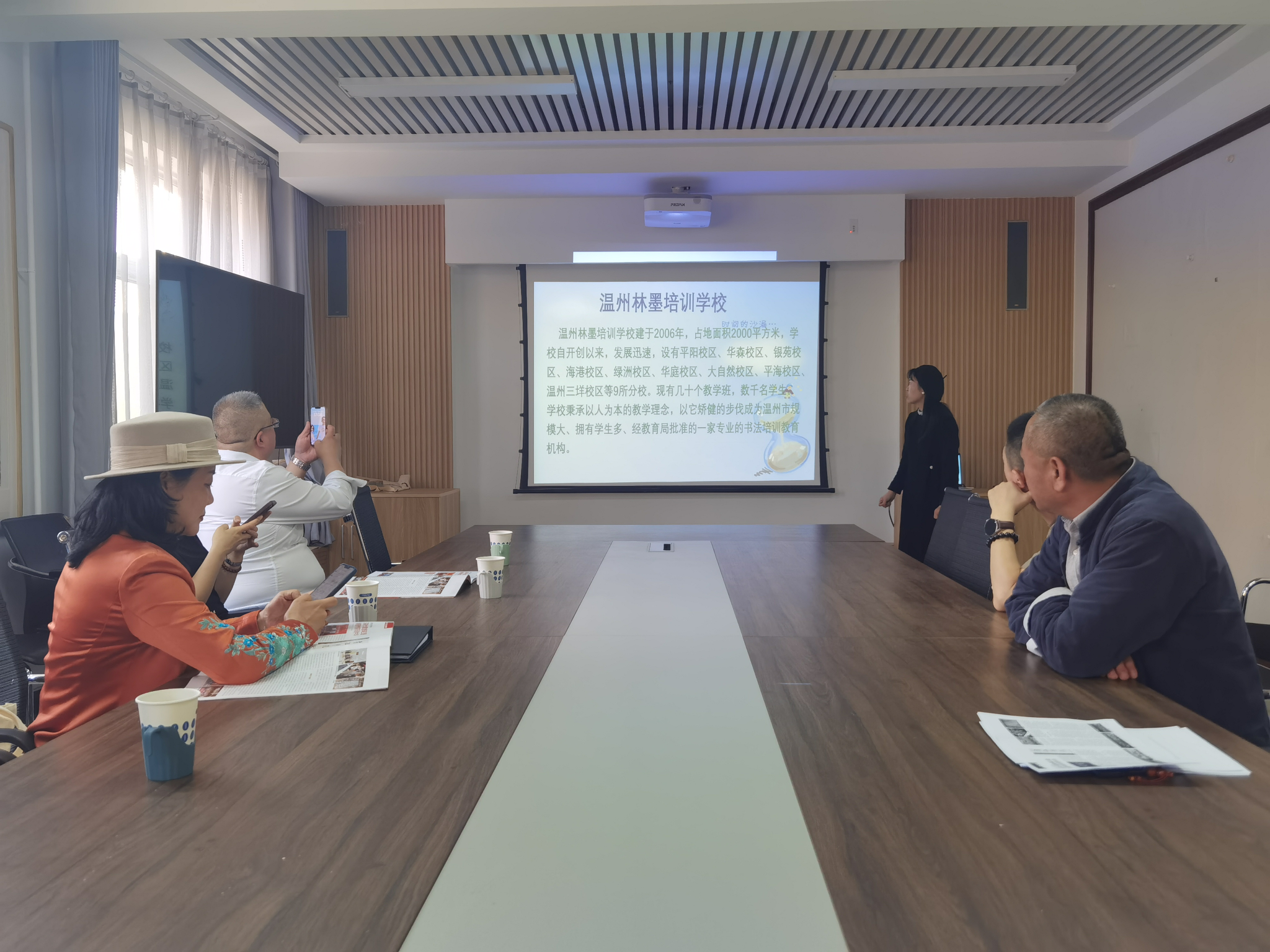 林墨董事长对365英国上市公司近年来的发展成就表示认可和赞扬,表示希望以此次合作为契机,在人才培养、教育实践等方面开展深度合作。随后,余海艳全方位介绍了林墨书法公司的发展历史、教学规模、职工待遇、所获荣誉等基本情况,重点展示了公司独创书法教学专利“龟背格”和自创书法教学动画片。
