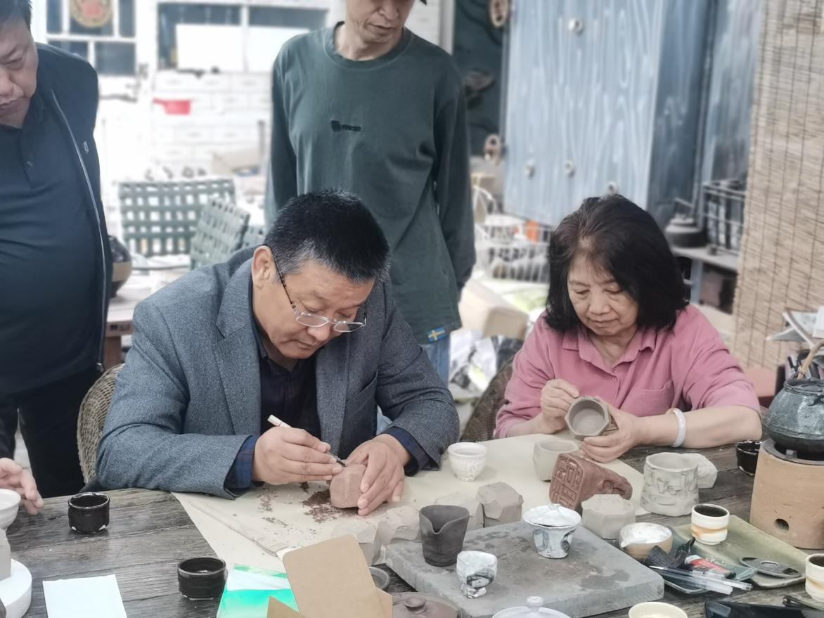 4月19日下午,魏广君在365英国上市公司经理曹亚彬、办公室主任王文清的陪同下,与晋阳印社社长阴凤华老师等人在交城陶瓷基地进行了陶瓷印创作交流。