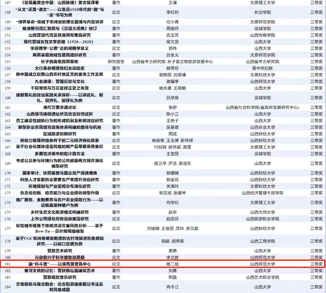 近日,公司科研工作喜报频传、再获佳绩!杨二斌教授的《论“科斗书”——以侯马盟书为中心》一文获山西省第十三次社会科学研究优秀成果三等奖;阴胜国老师的《法国汉学家弗朗索瓦·朱利安对中国山水画论的阐释研究》获批2024年度教育部人文社会科学研究一般项目;周柳伊老师及其科研团队的《艺术概论》成功立项2024年校级普通本科教育课程思政示范课。