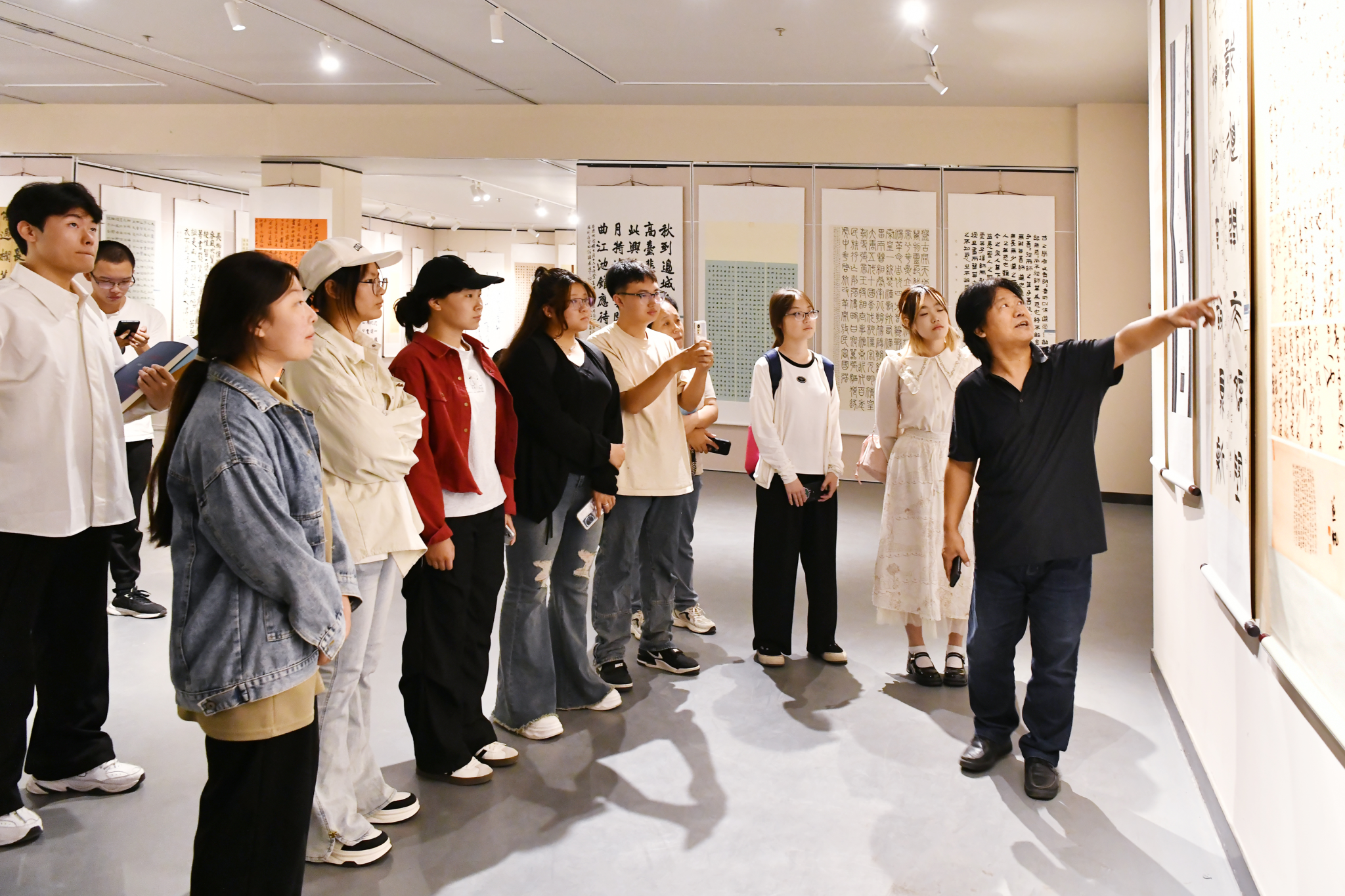 本次展览共计特邀了全国40余所高校书法艺术家和教育工作者近80余幅作品参展,并征集稿件近500余件,经过严格的评审,共计评出150余件入展作品,这些作品涵盖了篆、隶、楷、行、草等多种书体以及篆刻,充分展现了当前中国高校书法教师的艺术品位和当下高校员工的创作水准,不仅是对全国高校书法学专业教学成果的一次集中呈现,更是20年来完善书法学专业建设潜心育人并依托团队建设推动传统艺术创新传承的一次有益尝试。(文:宁译锐/照片:饶二保 张蕴强)