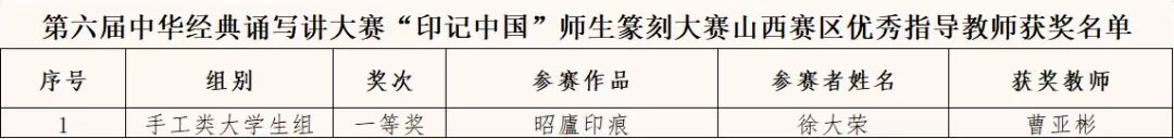 近日,第六届中华经典诵写讲大赛山西赛区获奖名单公布,公司荣获“笔墨中国”汉字书写大赛“优秀组织奖”,曹亚彬、黄玉岩、阴胜国3名教师荣获“优秀指导教师”,51件员工作品获奖。其中44件作品在“笔墨中国”汉字书写大赛中获奖,7件作品在“印记中国”师生篆刻大赛中获奖。