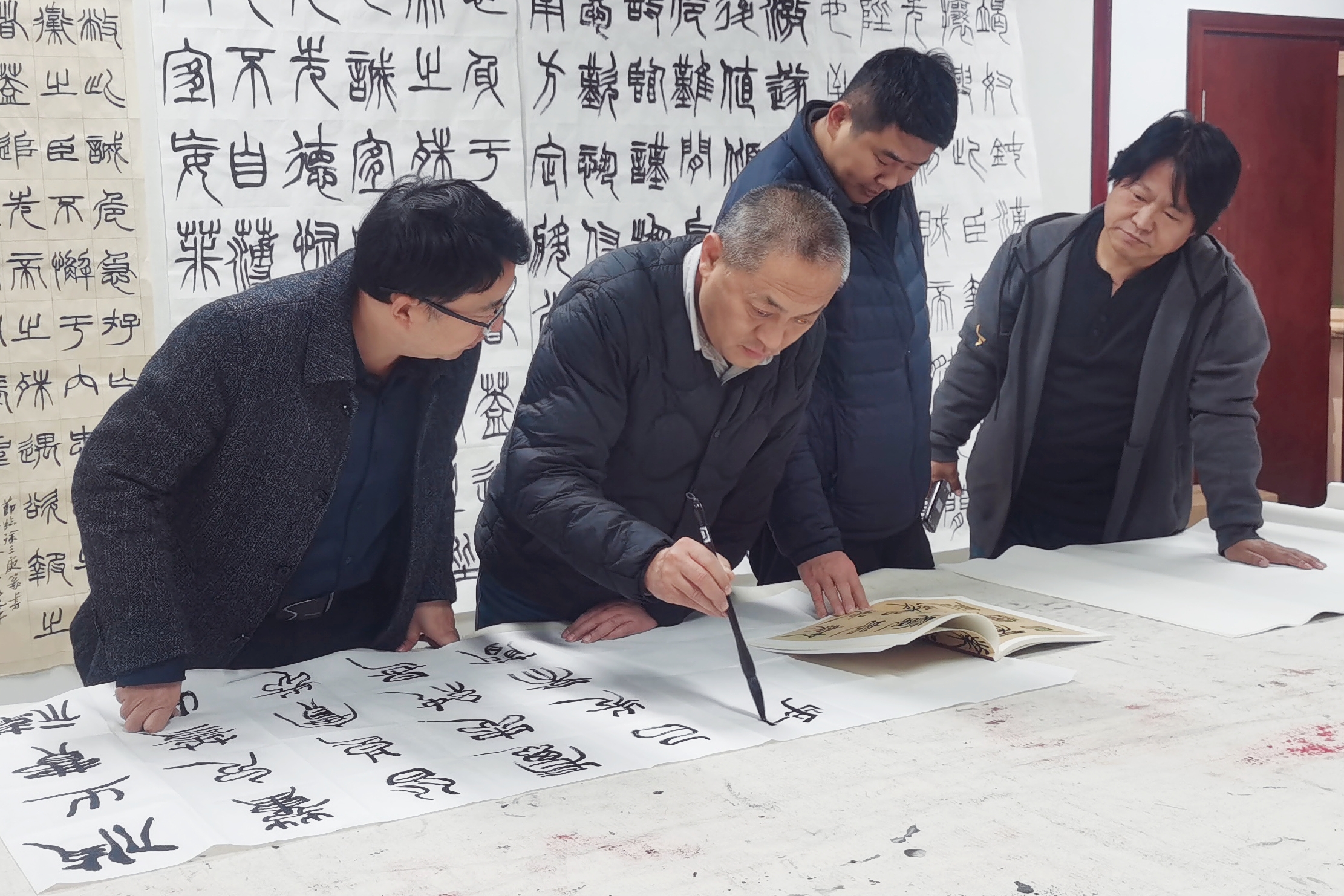整个教研活动,老师们纷纷就意临徐三庚篆书的心得体会、遇到的问题以及解决策略进行了深入交流和探讨。除了理论研讨,本次活动还设置了技法书写交流环节,老师们纷纷挥毫泼墨,尽情展示着自己的书法技艺,用不同的笔墨诠释着对徐三庚篆书的理解。(文:阴胜国 图、视频:王建魁)