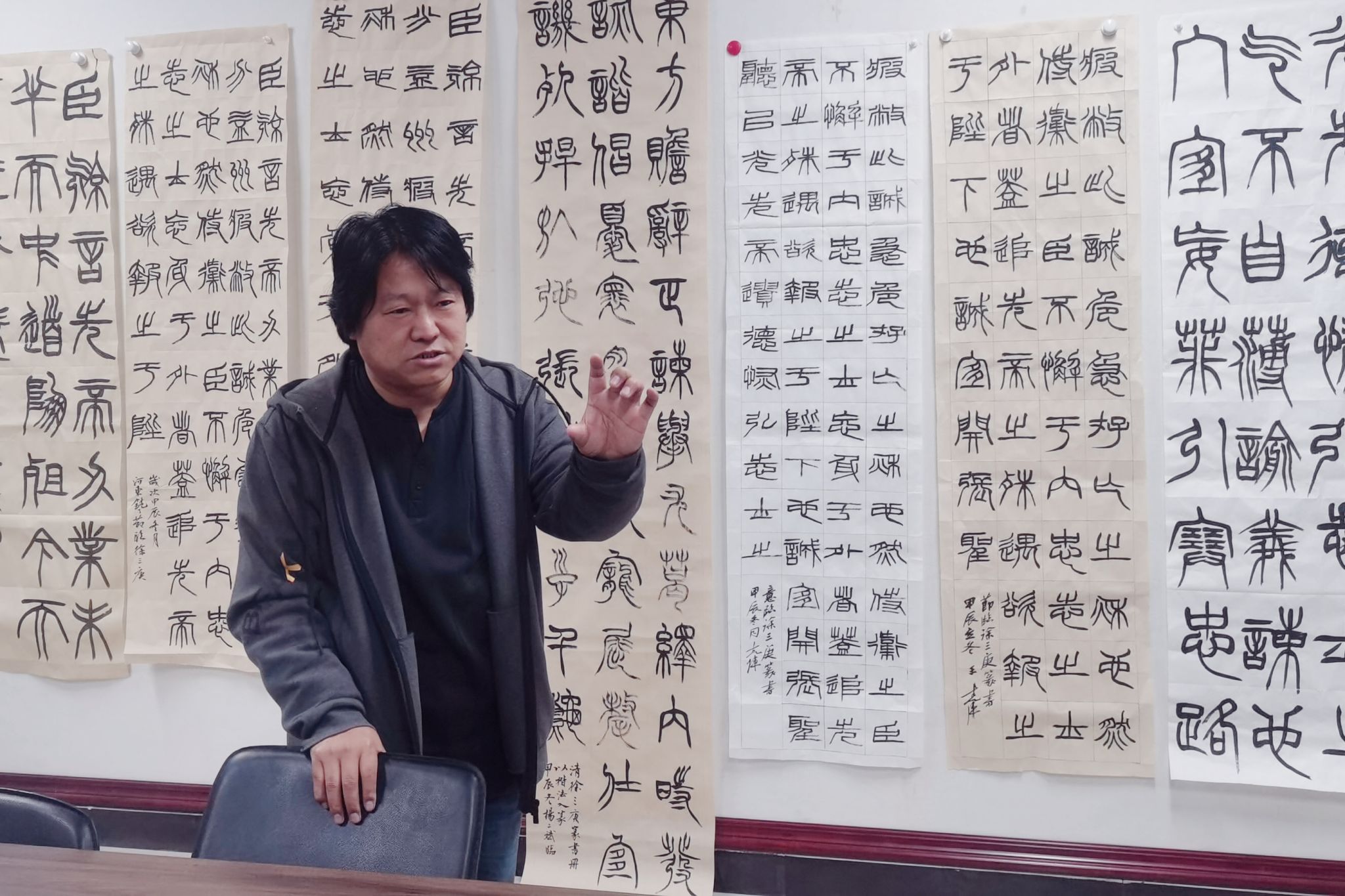 本次活动聚焦于清代书法家、篆刻家徐三庚所书《出师表》的艺术价值挖掘,并探索其在当代书法创作中的创新应用实践。活动开场,王建魁老师以清晰的思路,阐述了本次教研 活动的目的,并根据个人的书写经验阐述了演绎徐三庚篆书的具体策略。