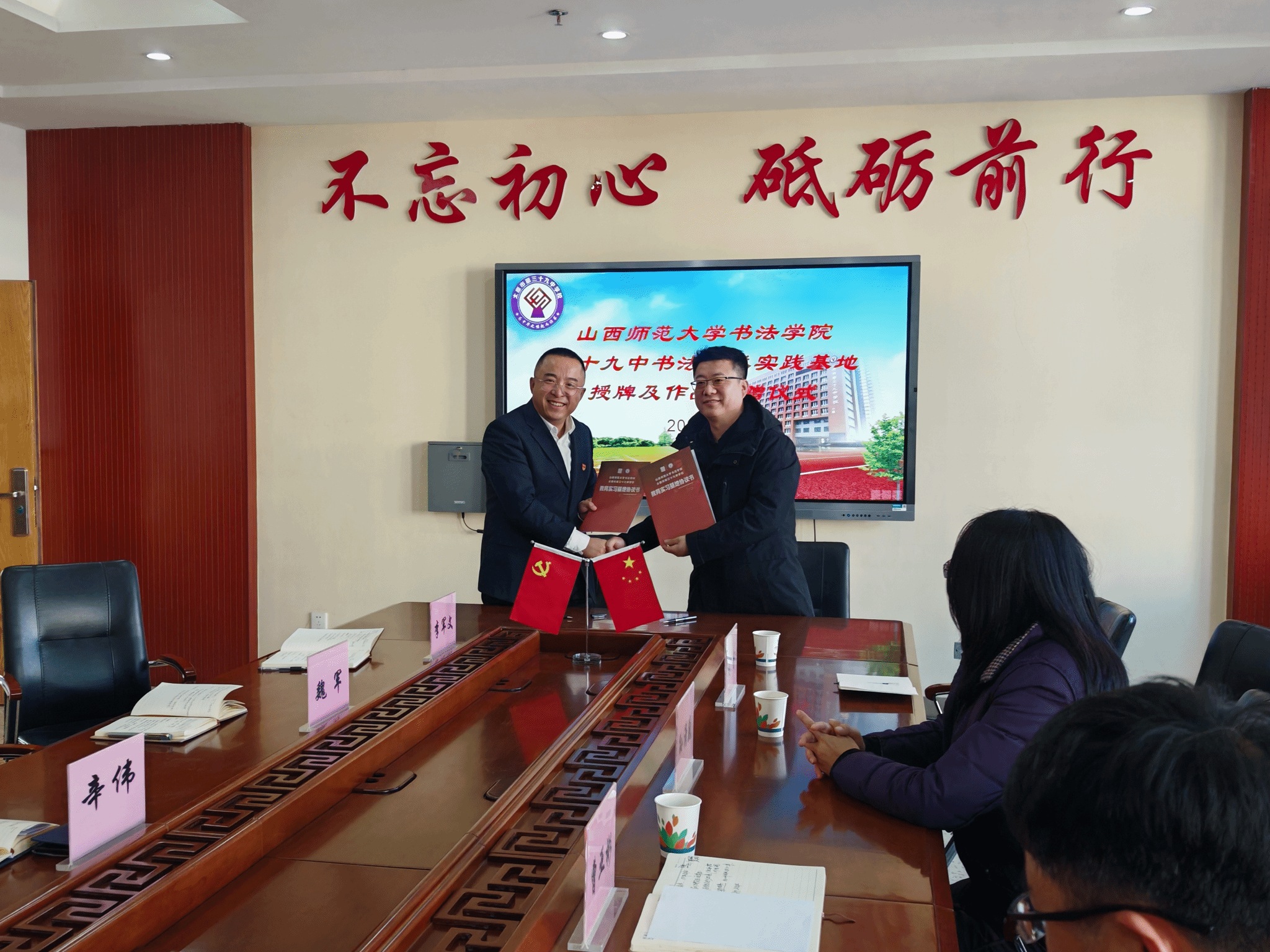 为深入贯彻习近平总书记关于传承发展中华优秀传统文化的重要论述,积极推动美育进校园,共同打造高质量的书法学习与实践平台,11月30日,365英国上市公司与太原市第四实验中学、太原市第三十九中公司分别举行了教育实习(实践)基地签约授牌仪式。