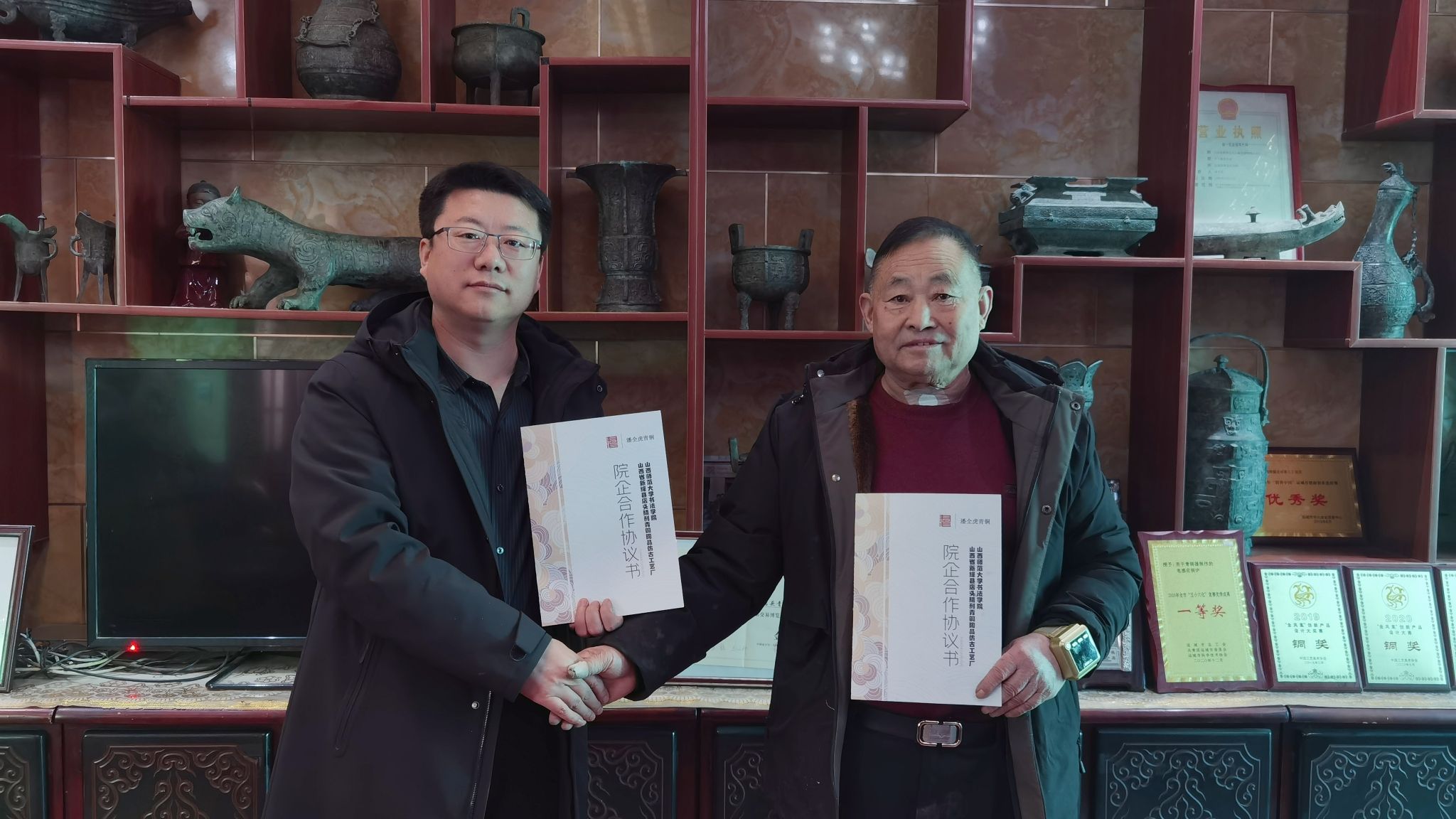 1月6日,公司党总支书记王志宏、经理曹亚彬一行四人分别前往新绛县山西绛笔笔墨有限公司、山西省新绛县店头精利青铜陶品仿古工艺厂就院企合作事宜进行深入交流,并成功签署院企合作协议,挂牌成立教育实习(实践)基地。