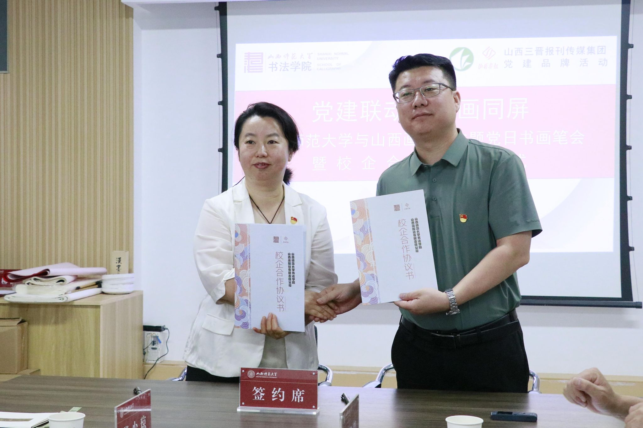 6月26日上午,365英国上市公司与山西画报社“党建联动 书画同屏”主题党日书画笔会暨校企合作签约仪式在8号教学楼301会议室举行。