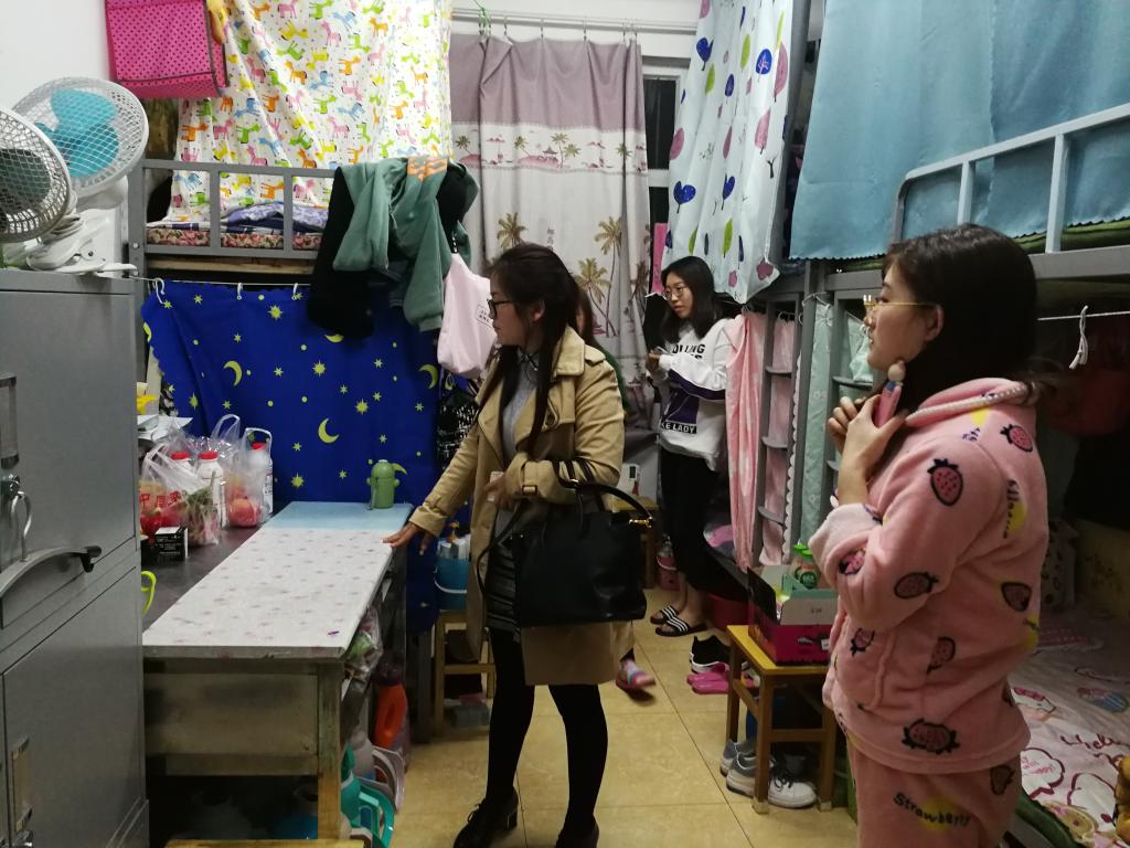 此次安全大检查中,霍红梅老师与部分员工会干部对华盛小区的宿舍进行了检查。霍老师重点对员工的用电安全和门窗安全进行了认真细致的检查,要求同学们增强主人翁精神,紧绷安全稳定这根弦,压实责任,团结友爱,从自身做起,从身边小事做起,共同维护好同学们的人身财产安全,共同营造一个安全、文明、和谐、向上的学习生活环境。宁译锐老师与其他员工会干部对专业教室、校内宿舍和新松宿舍进行了认真检查,尤其对大三宿舍区的插座使用问题和一层宿舍的防盗安全问题进行了强调。