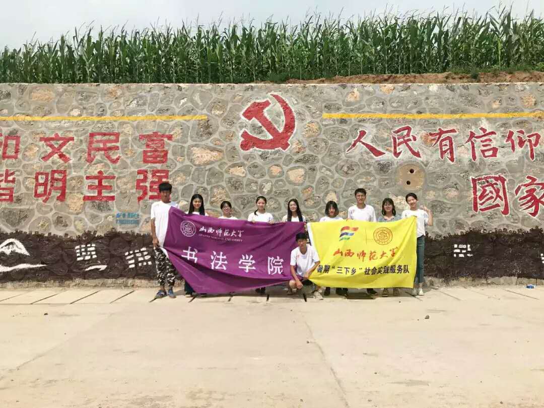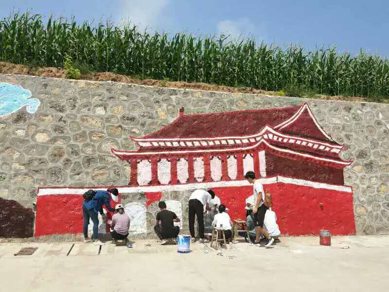 在前期策划完备后,队们在苏村宣传墙开始了十九大主题墙绘的制作。炎炎烈日下队员们有条不紊的进行着墙绘,大家分工明确,配合默契,遇到困难相互鼓励,没有任何人喊过累从太阳当头到夕阳西下,从简单勾勒到墙绘的完美呈现队员们将十九大精神和社会主义核心价值观通过生动活泼的形式,展现村民面前,让十九大精神和社会主义核心价值观融入村民的生活之中潜移默化地影响村民的价值观,让新时代思想扎根于普通民众思想中,为推进十九大精神在广大群众中贯彻落实和社会主义核心价值观构建贡献出自己的微薄力量