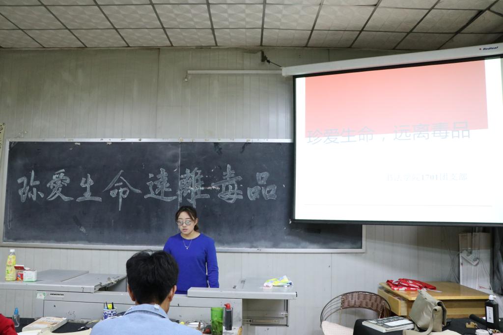 1601团支部开展了以“珍爱生命,远离毒品”为主题的主题团日活动,团支书通过相关事例、播放禁毒电影为同学们讲述了毒品的各种危害,并从毒品的来源、可能接触到的途径以及毒品吸食后的危害等各个方面对毒品做了介绍,使同学们更加深刻地感受到毒品对人类的危害。1701团支部在禁毒主题团日活动上,通过PPT形式向同学们系统地介绍了现今常见的毒品种类、吸食毒品的危害以及预防毒品的侵害方法等等,并列举个别案例,形象说明毒品危害。随后同学们进行自由发言,发表了自己的感想。1801团支部开展了“健康人生,绿色无毒”主题团日活动。会上,团支书通过PPT形式向同学们详细介绍了毒品的类型及毒品对身心、对家人、对社会的危害,同学们对青少年如何防止吸毒进行了重点学习,并通过测试题更加明确远离毒品的重要性。