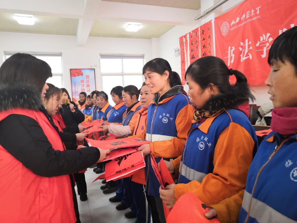 一副春联代表着一份深厚情谊,此次活动不仅使环卫工人们感受到了师大学子们的节日祝福,同时也是老员工积极践行社会主义核心价值观的生动体现。