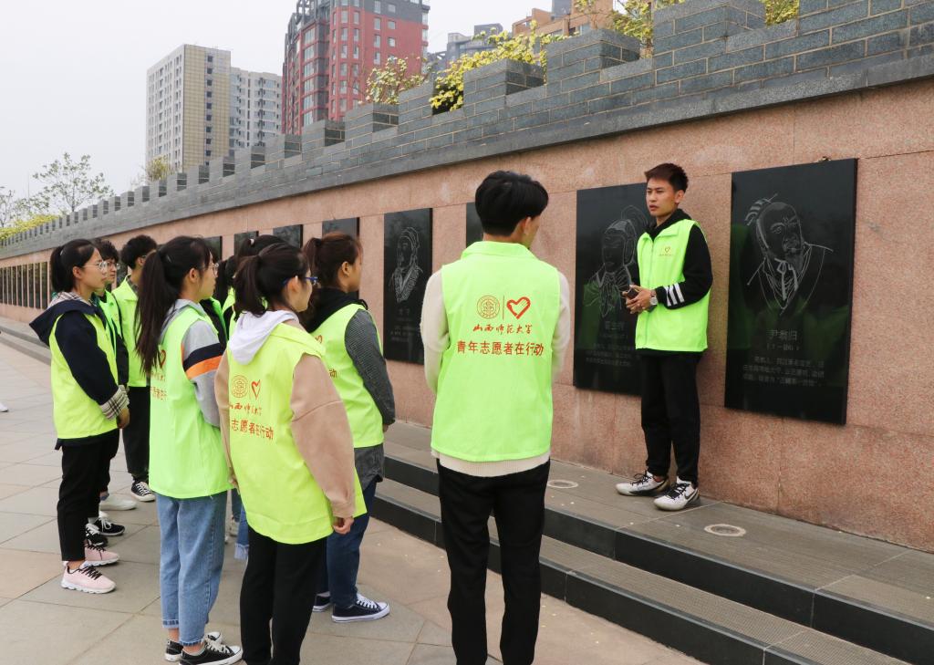 活动伊始,志愿者们列队来到古城公园名人广场,在临汾五十位历史名人的雕像前三鞠躬,深切缅怀中华先祖和历代的先烈,向他们表达崇高的敬意。随后,志愿者代表梁辰向大家重点讲述了霍去病、卫青两位民族英雄的历史事迹,使志愿者们深刻地感悟到英雄先辈英勇无畏的民族精神。最后,志愿者们互相交流了个人对英雄事迹的理解和体会,表达了向英雄先辈学习的决心。