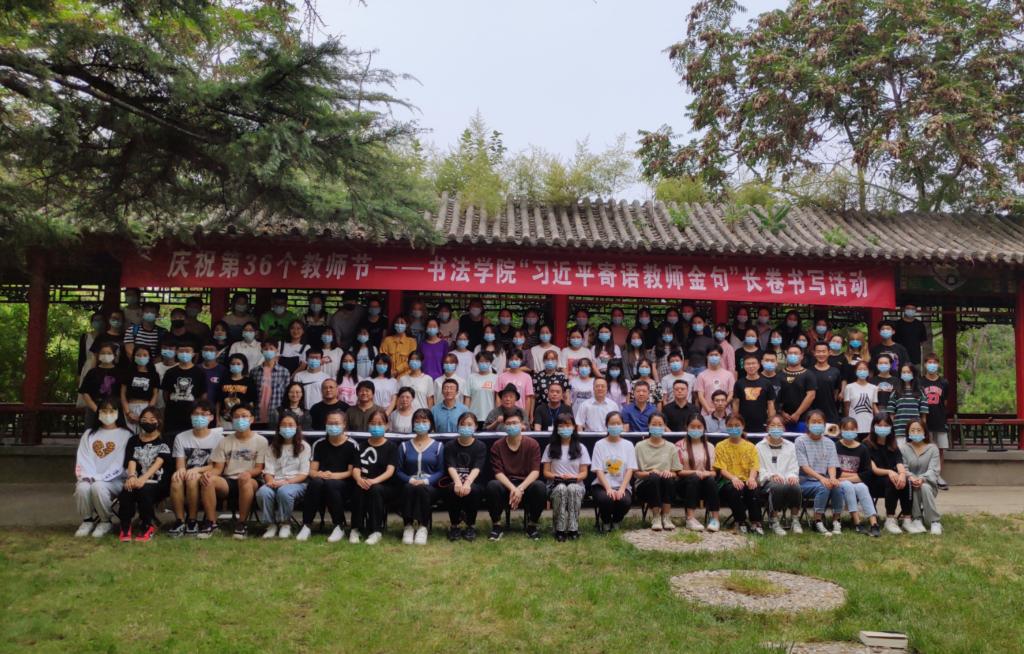 座谈会结束后,公司师生在莳英园开展了庆祝教师节“习近平寄语教师金句”书法长卷书写活动。