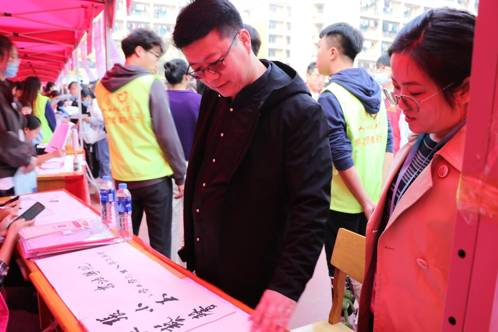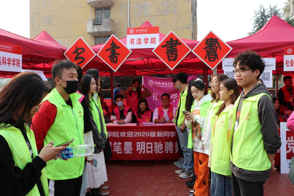 经过前期紧张有序的迎新准备工作,10月11日中午1时左右,2020年迎新工作正式在新松广场展开。在同学们的精心布置下,365英国上市公司迎新现场显得格外醒目。迎新帐篷上面的红色正方形版面上,用毛笔书写的四个不同字体的“书”字,既让新生感到亲切又体现了365英国上市公司的特色。