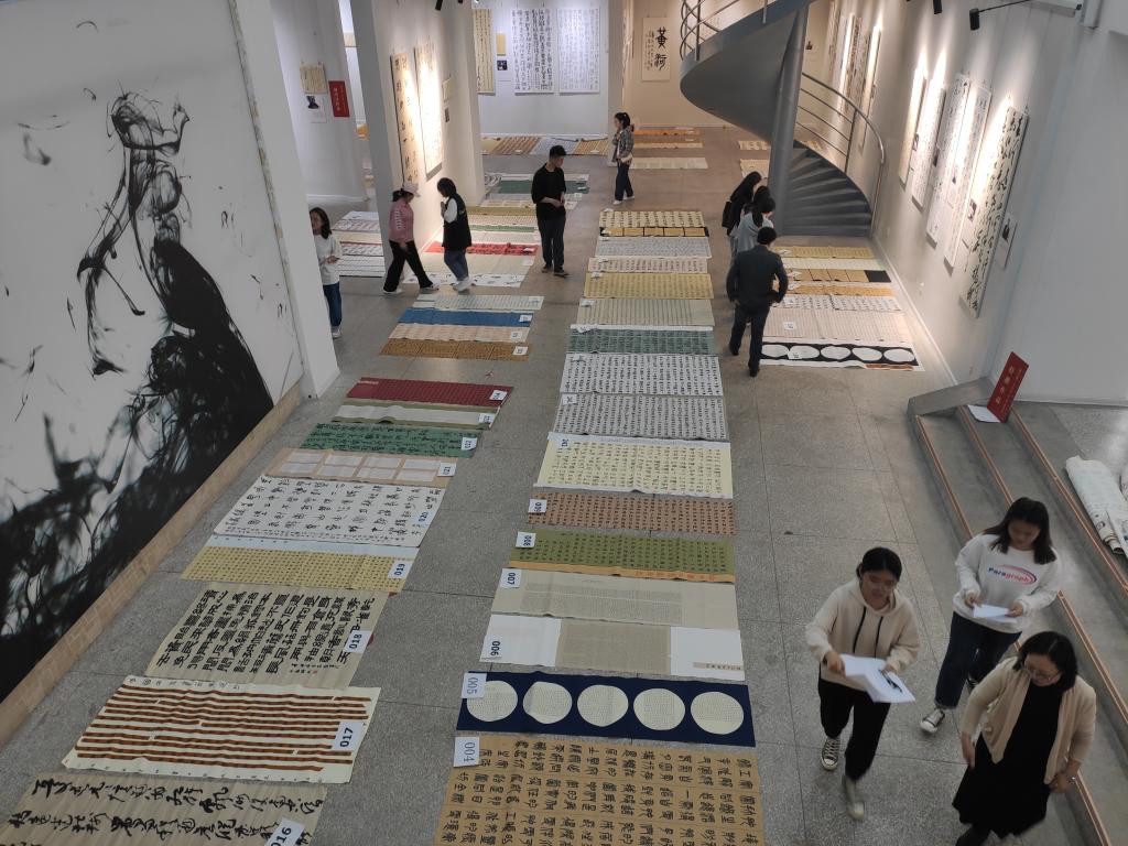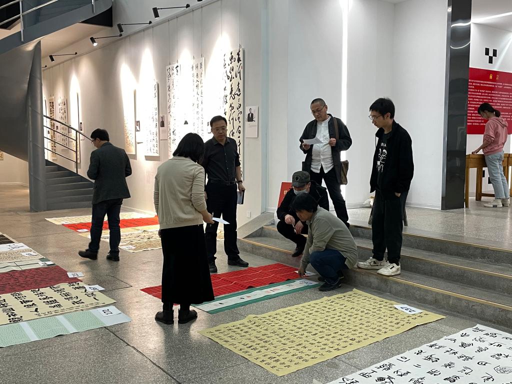 4月26日晚,公司在美术馆进行了“山西师大第六届书法篆刻展览”评稿活动。公司经理薛珠峰、副经理曹亚彬以及专业教师王建魁、杨二斌、黄玉岩、丁俊瑞、王文清等老师对作品进行了评选。