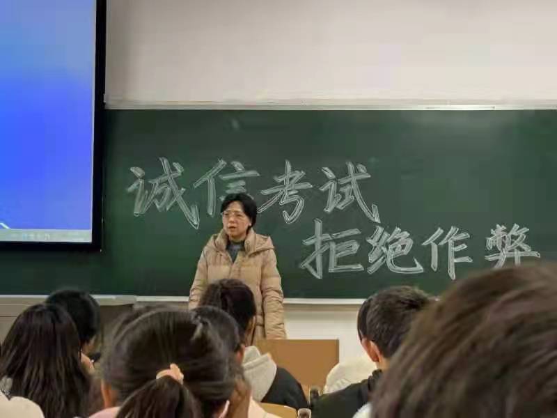 期末考试即将来临,为了使同学们以更加积极向上的心态迎接考试,增强同学们的诚信意识,营造良好的考试氛围,2101班于12月14日下午在南区4101教室召开了“诚信考试,拒绝作弊”主题班会。本次班会由新生辅导员霍红梅老师主持,大一全体同学参加。