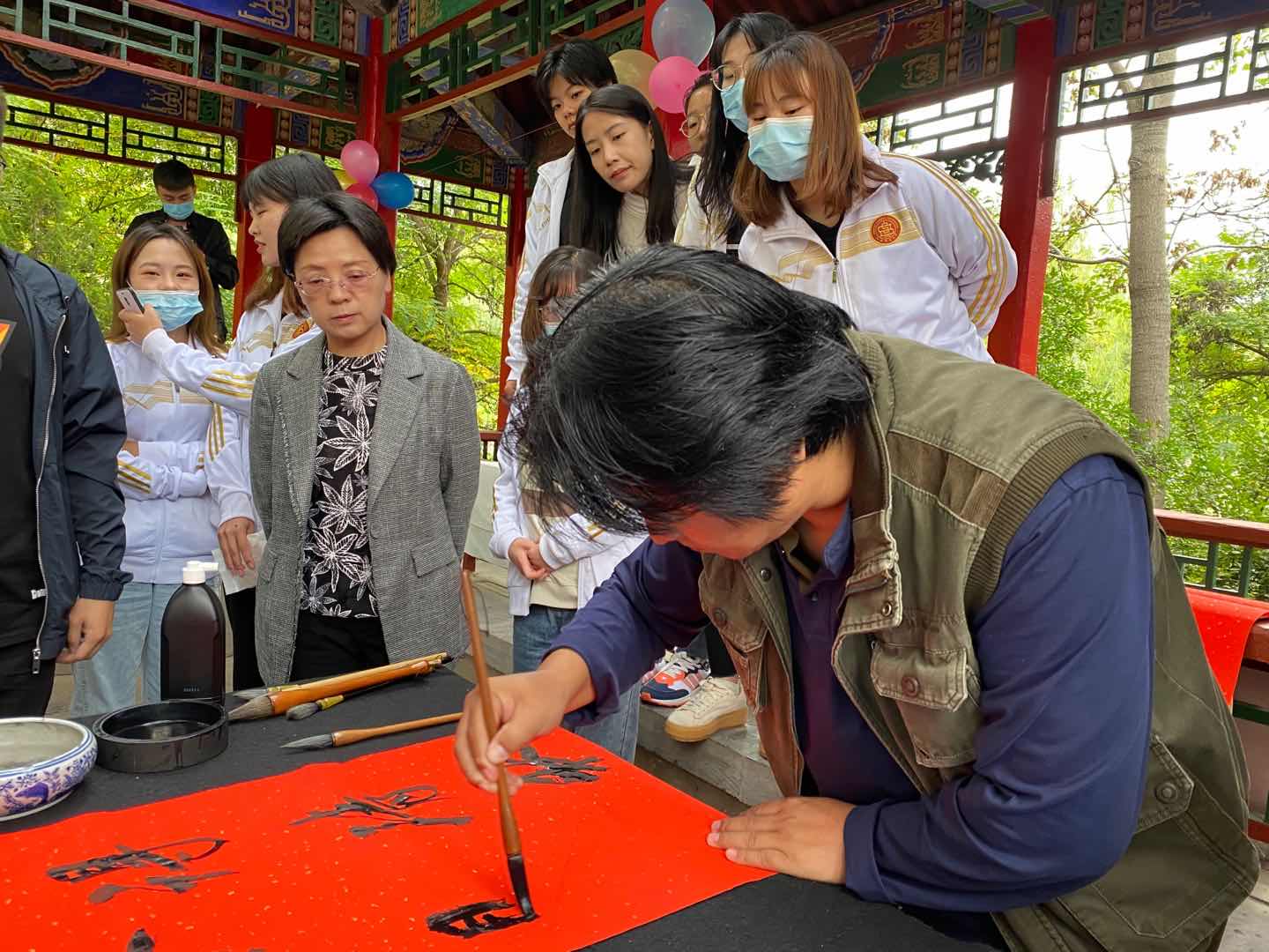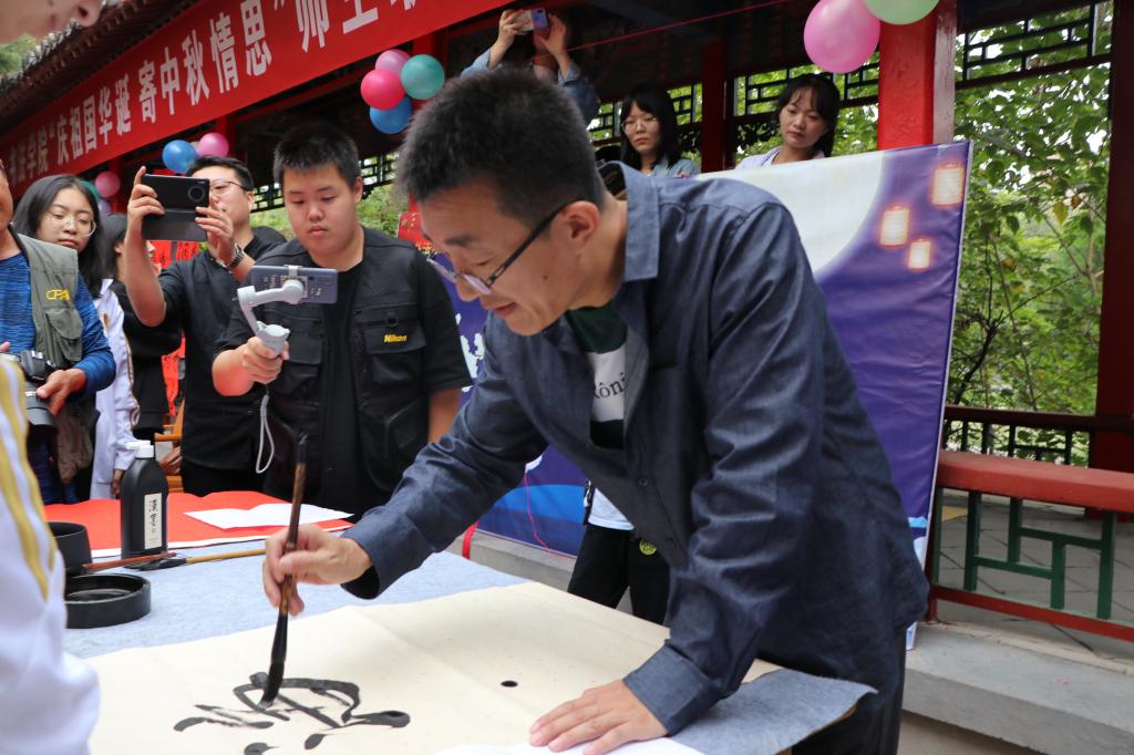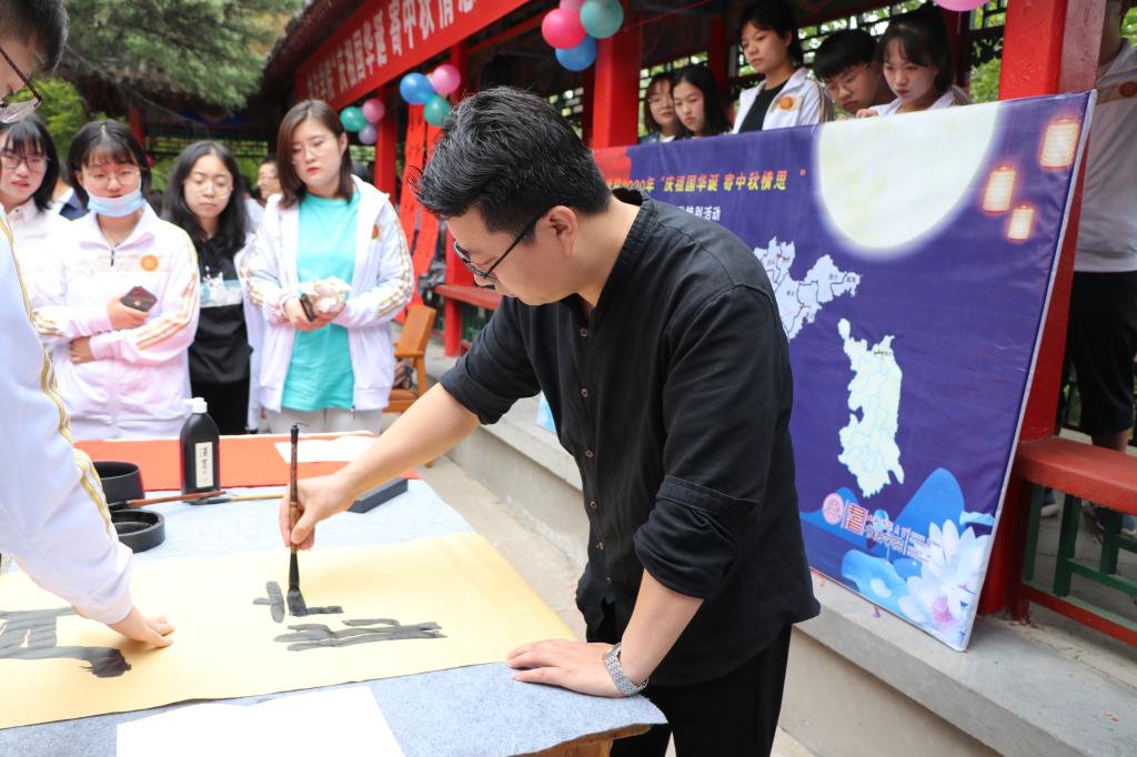 活动现场,公司师生满怀深情,挥毫泼墨,共同抒发对祖国的热爱之情和对亲人的思念之情,表达自己的家国情怀和对祖国、对亲人的美好祝愿。一幅幅作品悬挂在走廊间,给活动现场增添了浓浓的节日气氛,公司技法教研室主任王建魁老师对师生书写的作品进行了一一点评,使大家受益匪浅。