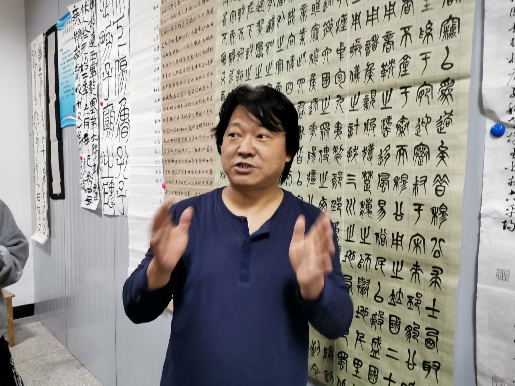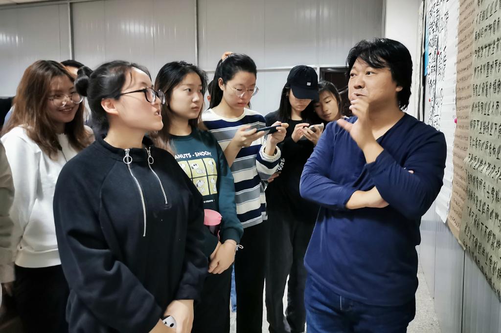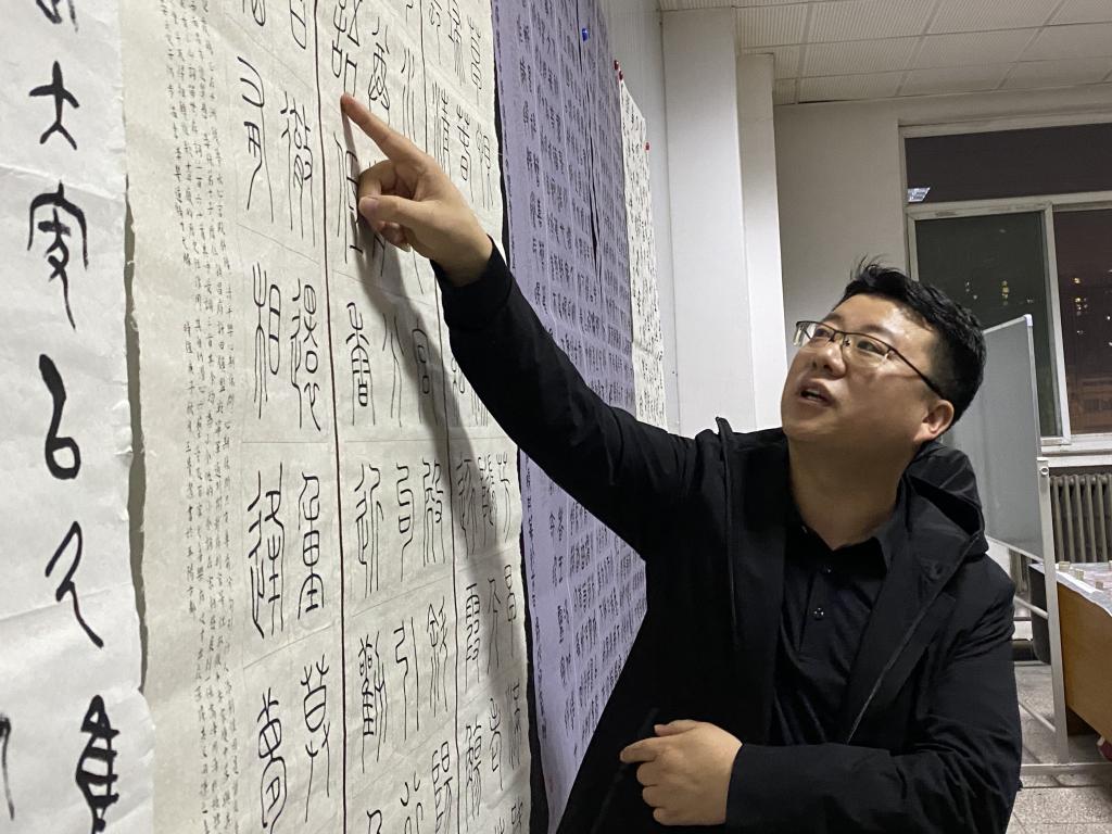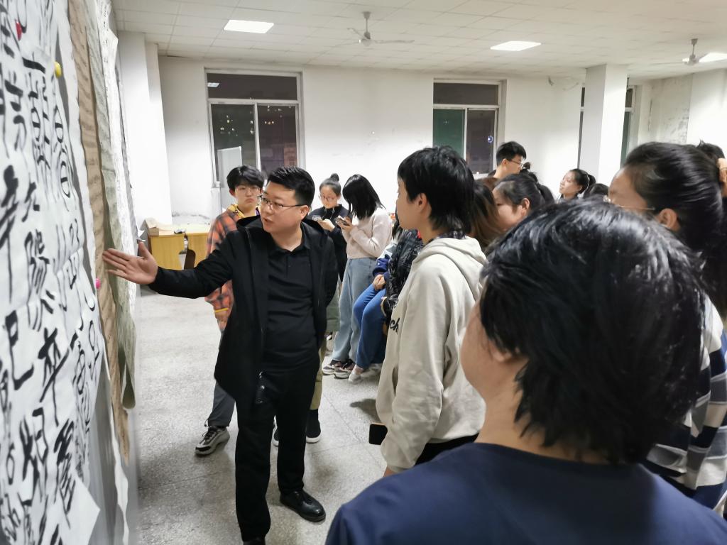 10月10日晚,公司在新松专业教室举行了全国第五届正书展第四次看稿会。副经理曹亚彬和技法教研室主任王建魁对同学们准备的作品逐一点评,指出了作品中的优点与缺陷,并勉励同学们要重视此次展览,认真准备,积极参与,及时结合作品点评意见修改作品。