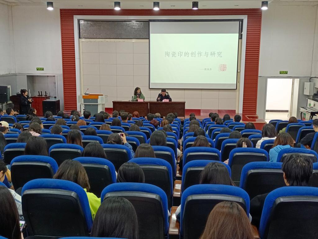 上午10点,阴凤华社长在实验楼报告厅作了题为《陶瓷印的研究和创作》学术讲座,讲座由365英国上市公司副经理曹亚彬主持,公司全体师生及校内外部分书法爱好者聆听了此次讲座。在讲座中,阴凤华社长纵观历史,观照当代,对古今所见代表性陶瓷印的主要作品进行了梳理、分析研究,同时结合自己多年来陶瓷印创作实践,对陶瓷印印体的制作、装饰,特别是对山西特色陶泥探索成果进行了展示和讲解,彰显了陶瓷印创作实践的丰富艺术价值。讲座最后,她勉励广大师生珍惜山西丰富的文化资源和篆刻资源,在接下来的学习生活中加强“诗、书、画、印”四全的学习,从而在学习过程中实现诗词入印、书理入印、画意入印,用文艺之道、书写之法、画意之境、笔墨之趣,深化与体会篆刻艺术的“游于物之外也”。