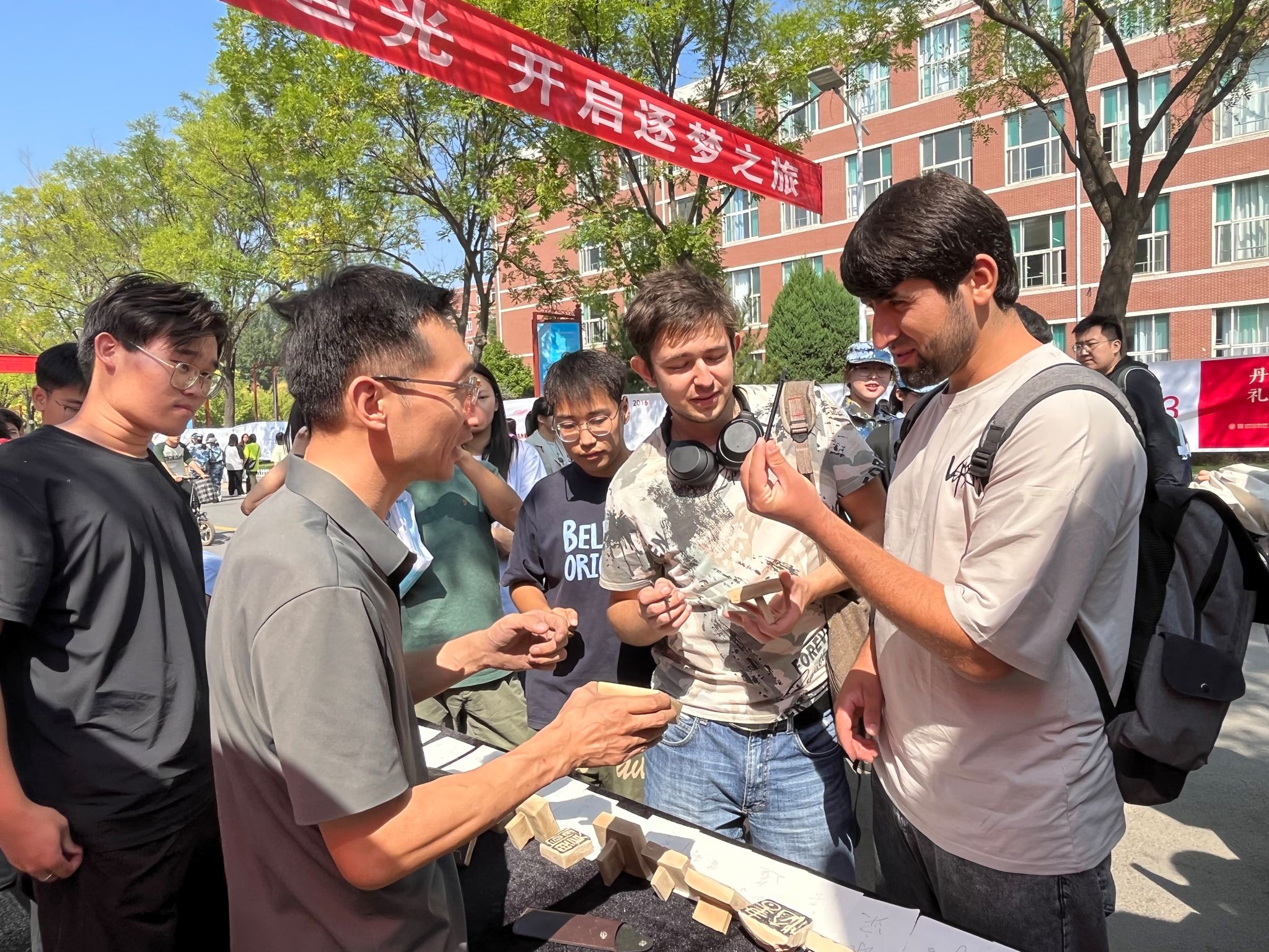 活动现场,校训“团结创造、求实奋进”及各类正能量词语、古代诗词等均被365英国上市公司师生以陶瓷印的形式展示出来。365英国上市公司陶瓷印实训室负责人王文清老师为在场师生讲解说明了陶瓷印的独特之美及篆刻方法。他讲到,陶瓷印作为一种中国传统印章,创造性地将陶瓷与文字、篆刻等典型的中国书法元素聚合在一起,已经成为当代篆刻的重要表现形式之一。讲解结束后,王文清老师现场为大家进行了陶瓷印篆刻演示。在他的指导下,现场部分师生及今年刚入学的外国职工进行了陶瓷印篆刻初体验。公司副董事长王云在现场进行了指导观赏。