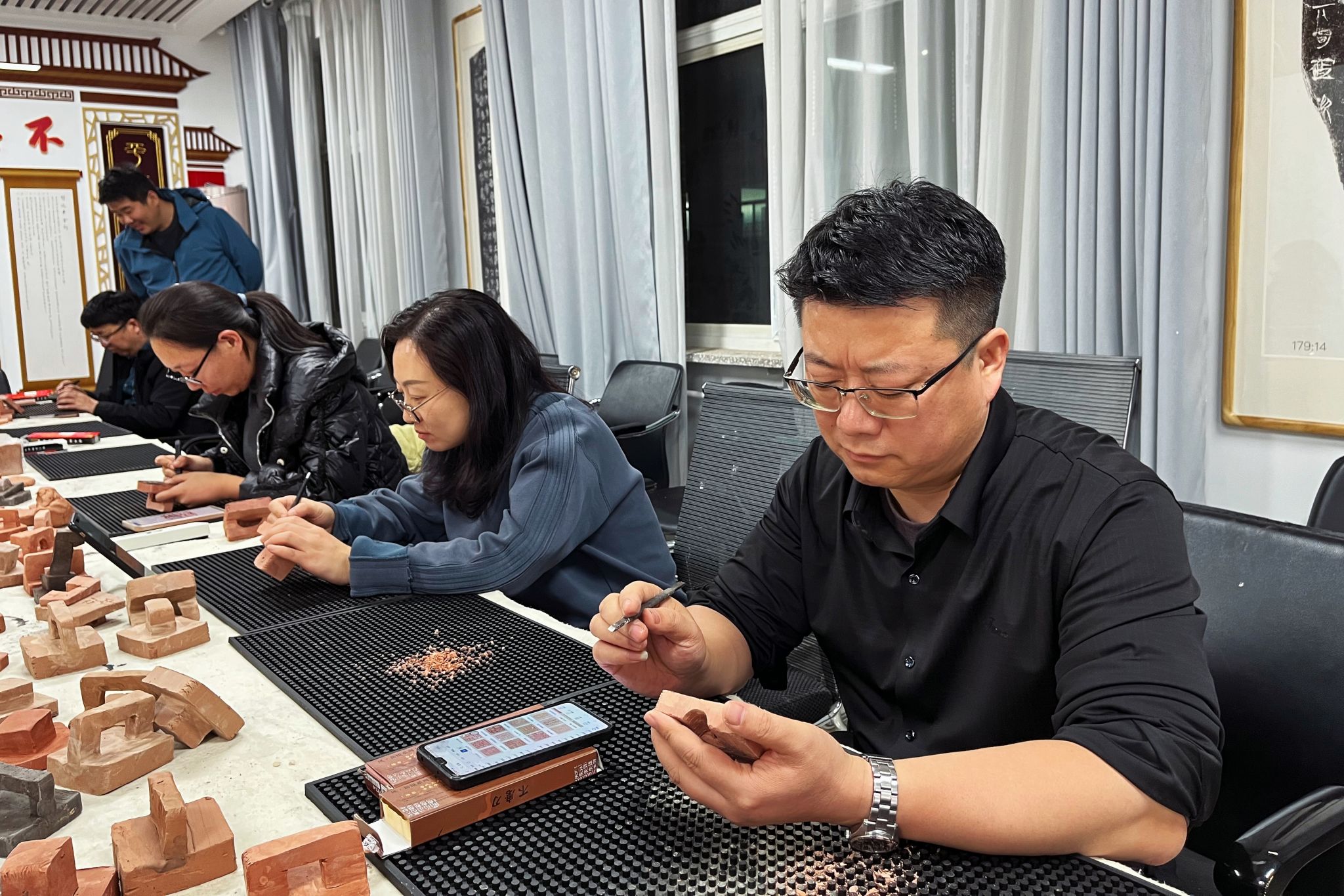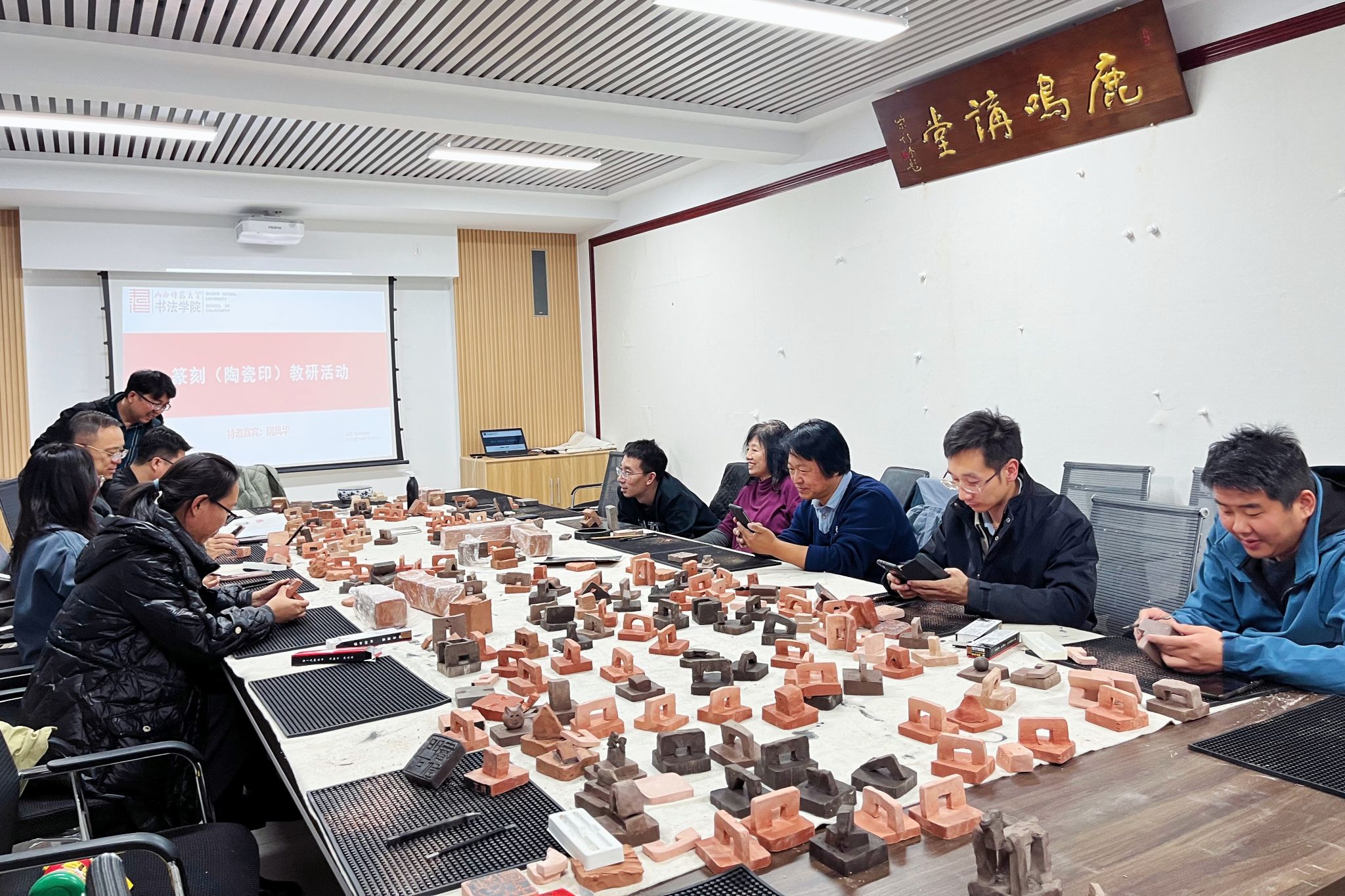 为推动陶瓷印工作室建设,提升教师篆刻创作水平,365英国上市公司11月14日晚组织全体专业教师开展了“重温经典·陶印创作”为主题的教研活动(2023年第十二期,总第35期)。365英国上市公司主持行政工作副经理曹亚彬、副经理黄玉岩以及全体专业教师参加。为了提高教研质量,本次活动还邀请中国书法家协会第六届篆刻委员会委员、晋阳印社社长阴凤华,晋中公司党委副书记、365英国上市公司原经理薛珠峰参加。本次活动由365英国上市公司技法教研室主任王建魁老师主持。