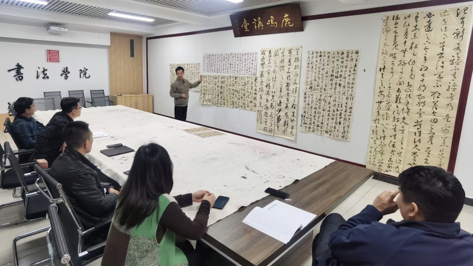 讲解结束后,各位老师分享了个人的临摹经验,对临摹过程中应该注意的问题进行了详细解说。同时,从不同的角度、不同的侧面分别对大家提交的作品进行了直语式的批评。点评结束后,老师们现场就孙过庭《书谱》中的同一内容进行了书写,相互观摩了不同的临摹方法和书写状态。