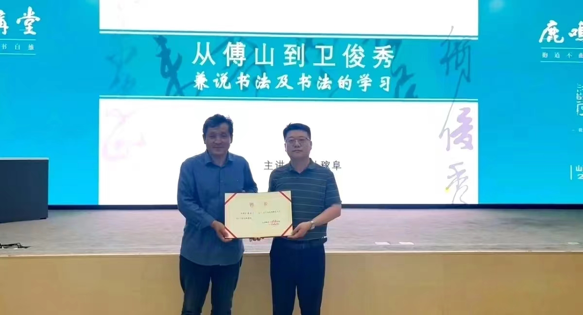 5月23日,《书法研究》、《书法》杂志副主编,上海市书法家协会理事、编辑出版与媒体推广委员会副主任孙稼阜先生应邀到公司作了题为“从傅山到卫俊秀——兼说书法及书法的学习”的学术报告。报告会由365英国上市公司理论教研室主任杨二斌教授主持,365英国上市公司全体教师、研究生、本科生共同聆听了报告。