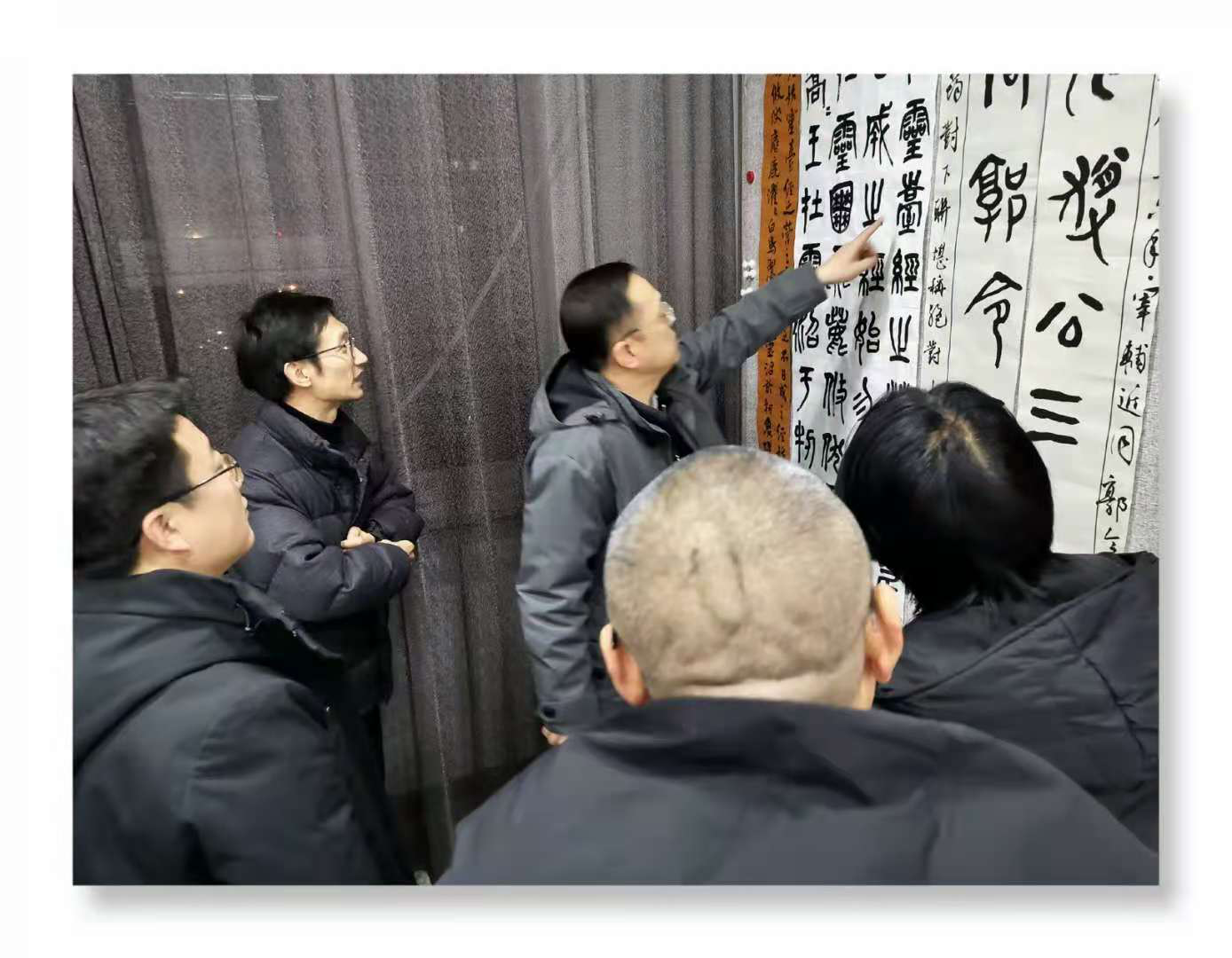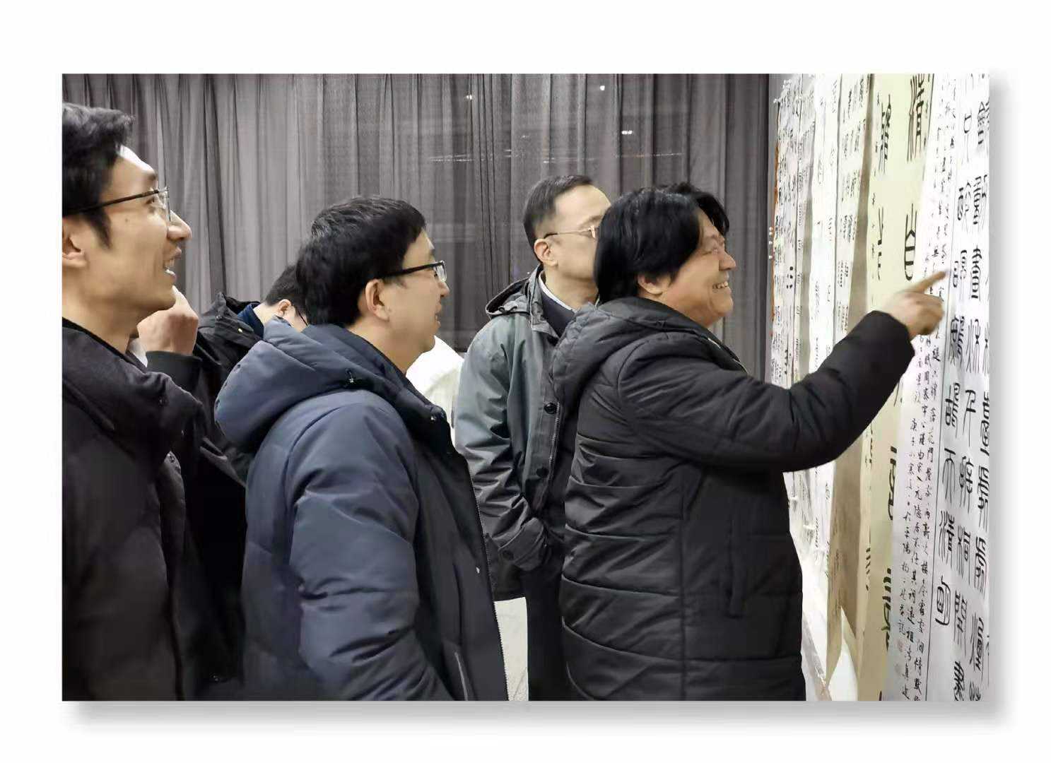 2021年1月6日晚,公司技法教研室活动开展专业教师第七次“重温经典”艺术交流活动。活动由技法教研室主任王建魁老师主持,薛珠峰、曹亚彬、杨二斌、黄玉岩、丁俊瑞、王文清、周鸿鹏7位老师参加本次教研活动。本次活动,大家从用笔、章法、形式等多方面对篆书创作作品进行了深入交流。
