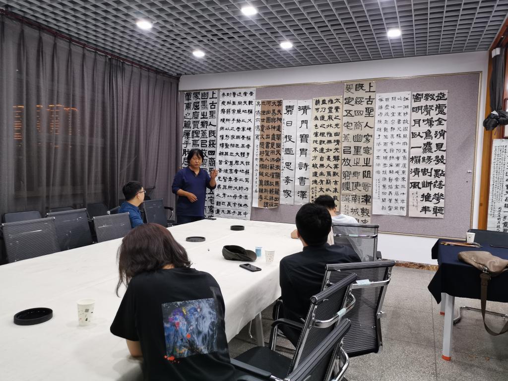 2021年5月19日晚,公司技法教研室活动开展专业教师第十三次“重温经典”艺术交流活动。活动由技法教研室主任王建魁老师主持,曹亚彬、杨二斌、黄玉岩、丁俊瑞、王文清、周鸿鹏6位老师参加本次教研活动。教研活动中,大家对各自临摹的清代隶书作品进行了点评交流。